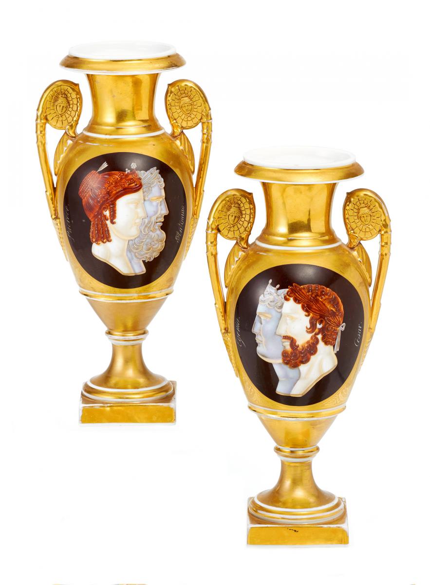 PAAR VASEN MIT BILDNISMEDAILLONS.