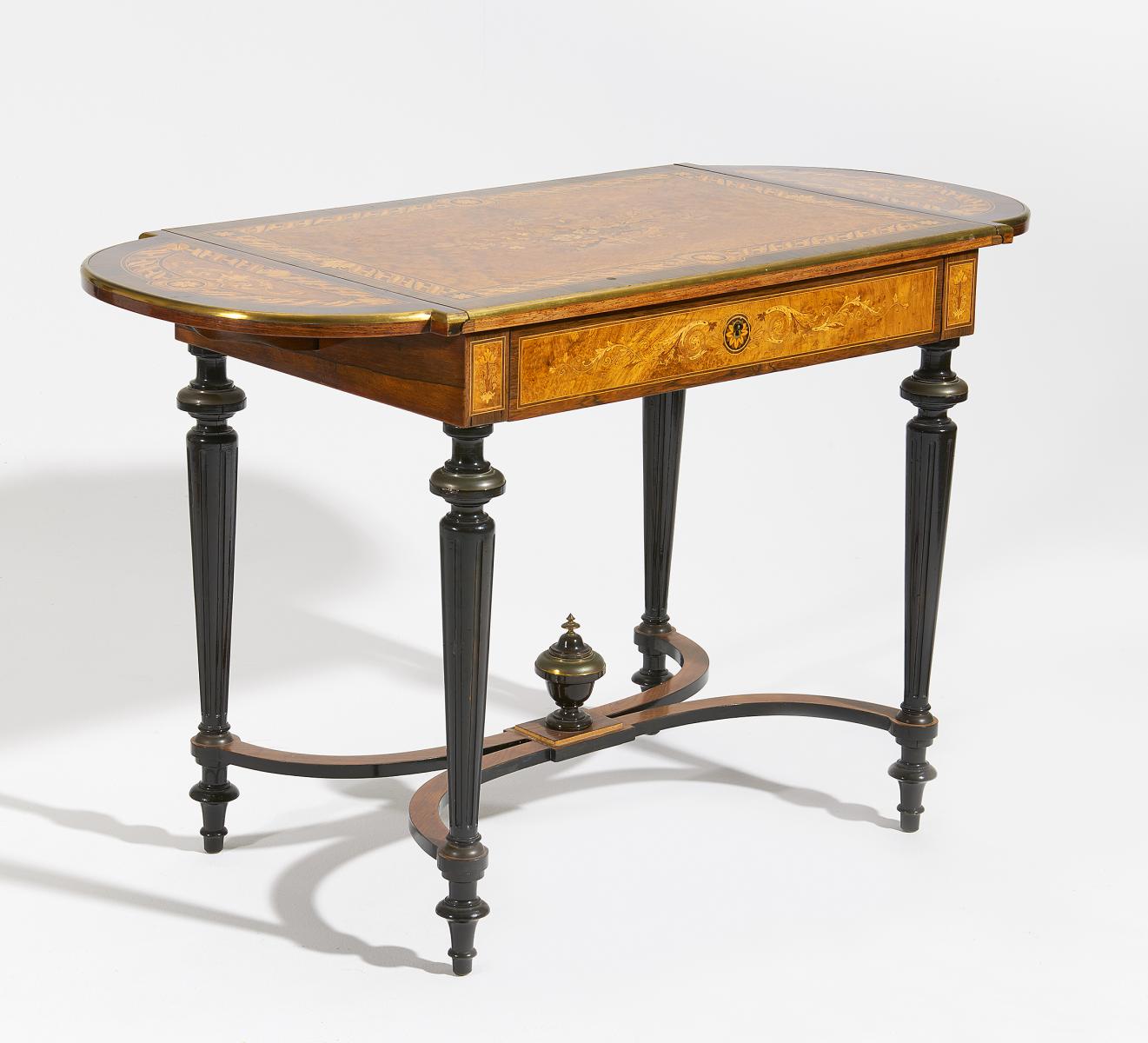 Technik: Verschiedene Edelhölzer poliert und eingelegt.