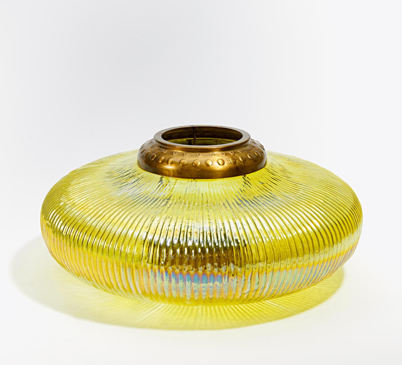 Material: Glas, gelbes Dekor. Metallmontierung.