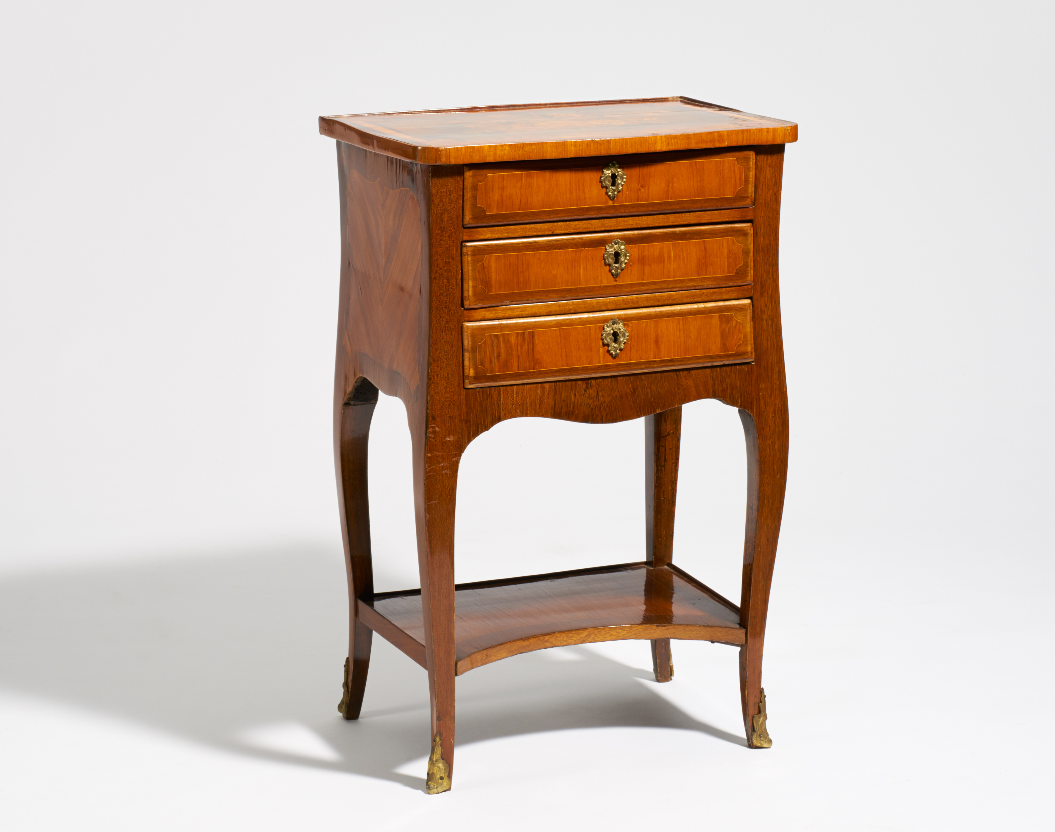 Technik: Palisander, Rosenholz, Ahorn, tlw. grün gefärbte Einlagen.