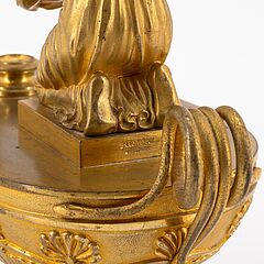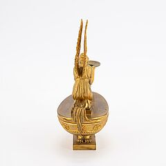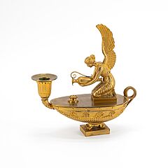 Auf der Oberseite eine geflügelte Victoria kniend aus einer großen Kanne Öl in eine Schale
