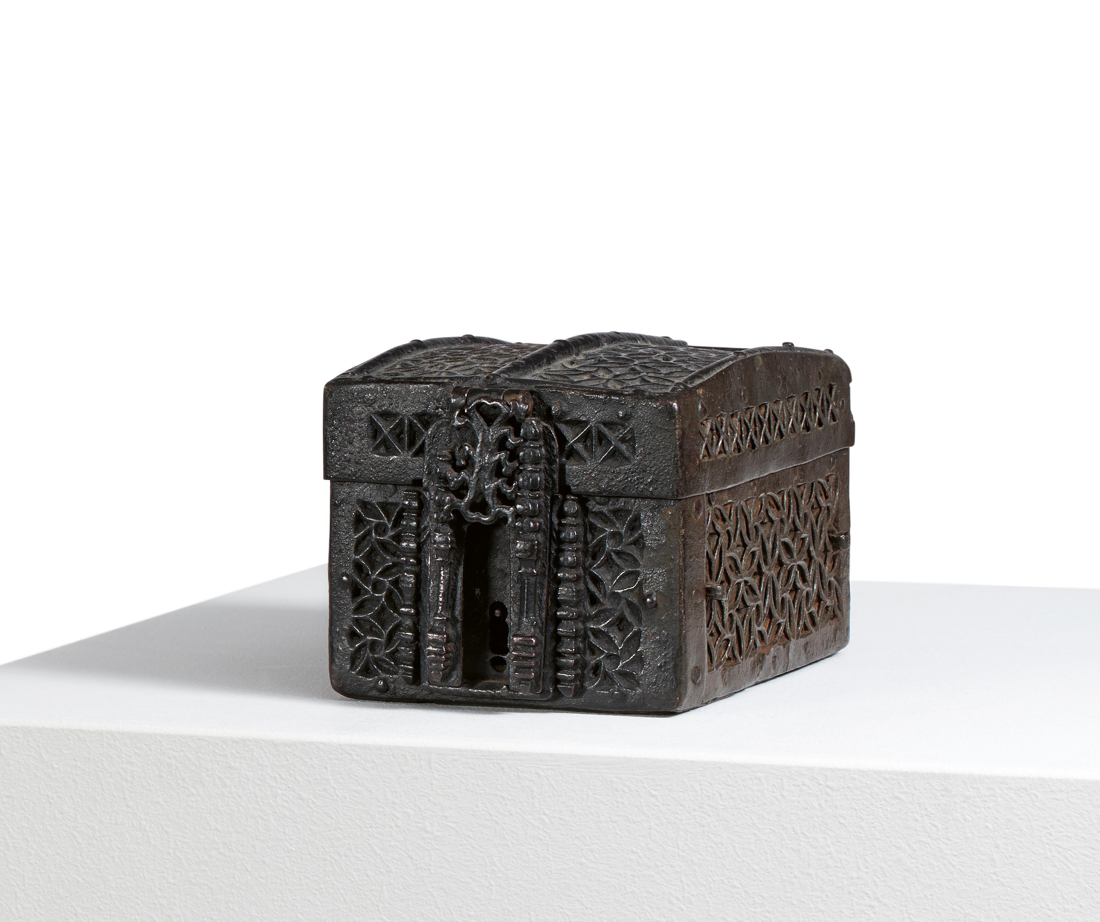 Technik: Eisen auf Eichenholzkern. Innen später mit Stoff ausgeschlagen.