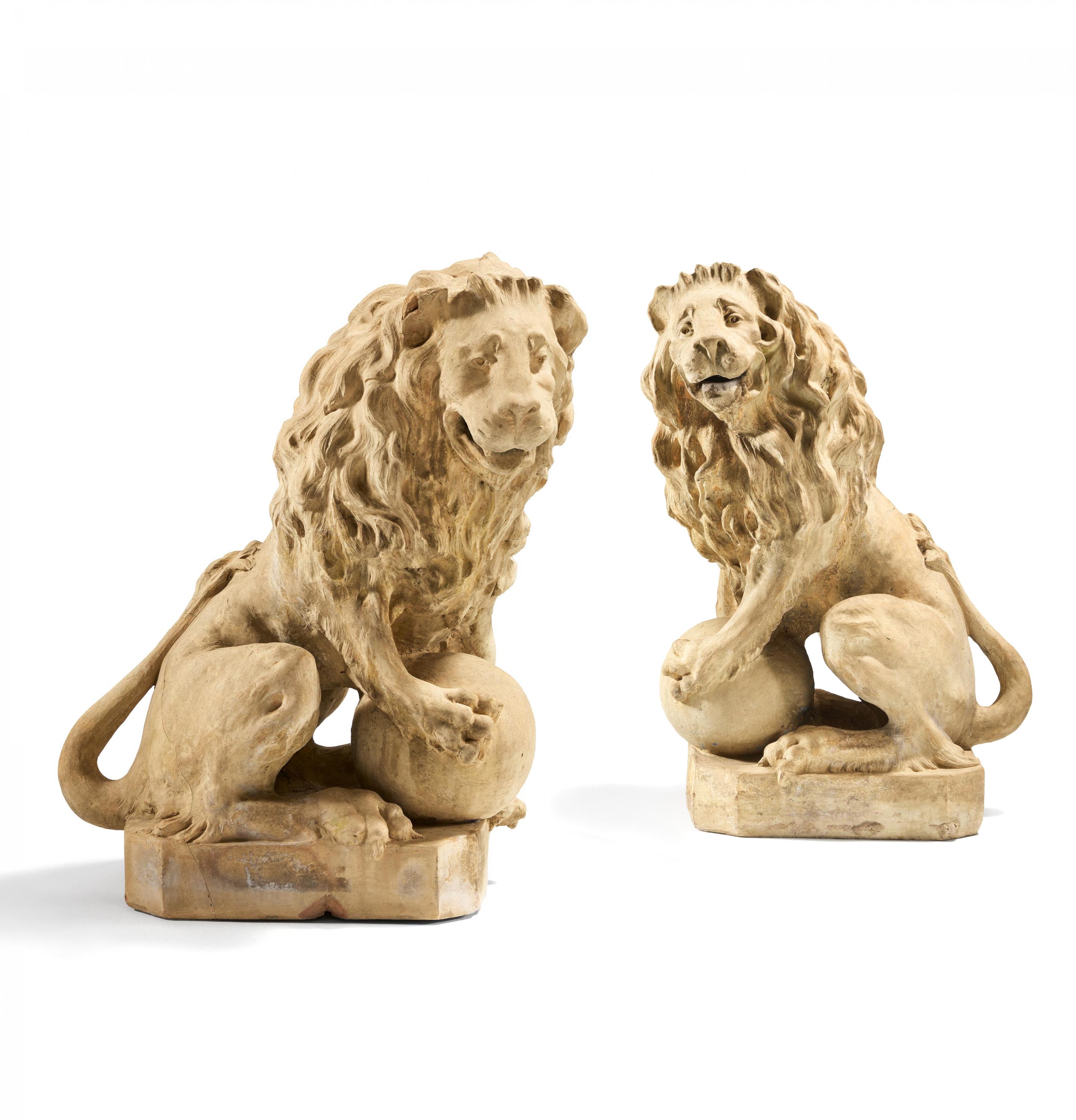 PAAR AUßERGEWÖHNLICHE LÖWENFIGUREN.