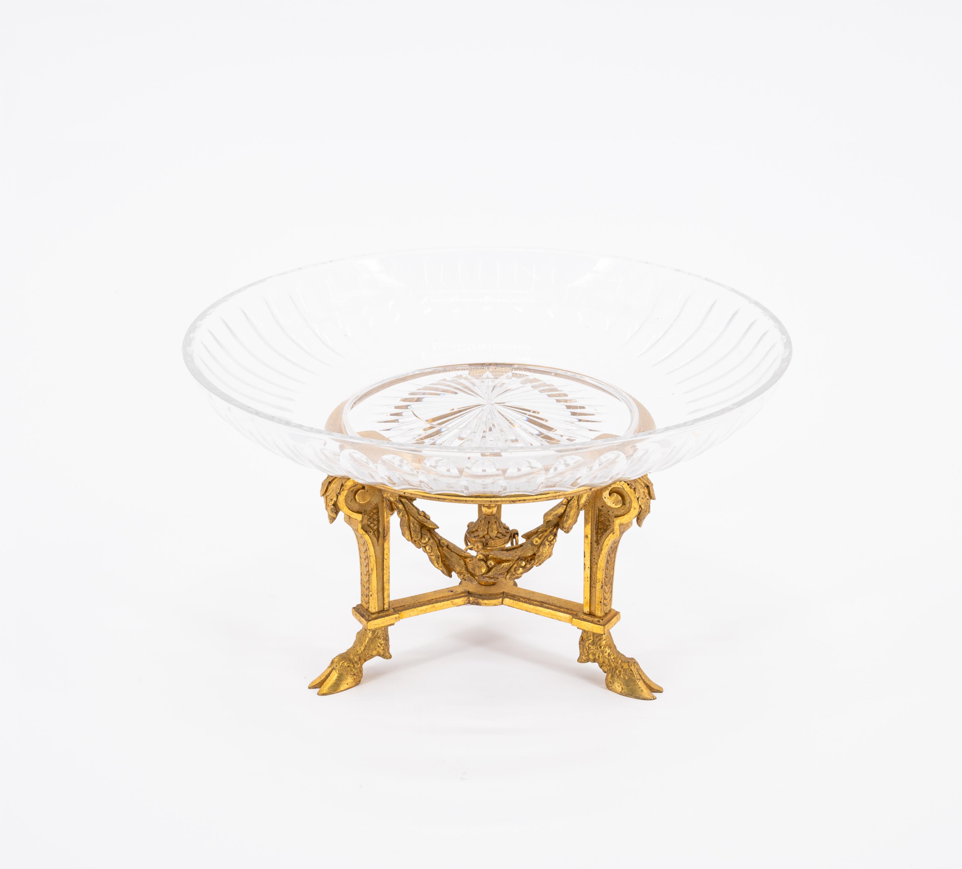 Technik: Bronze, feuervergoldet. Je aufgelegte Glasschale.
