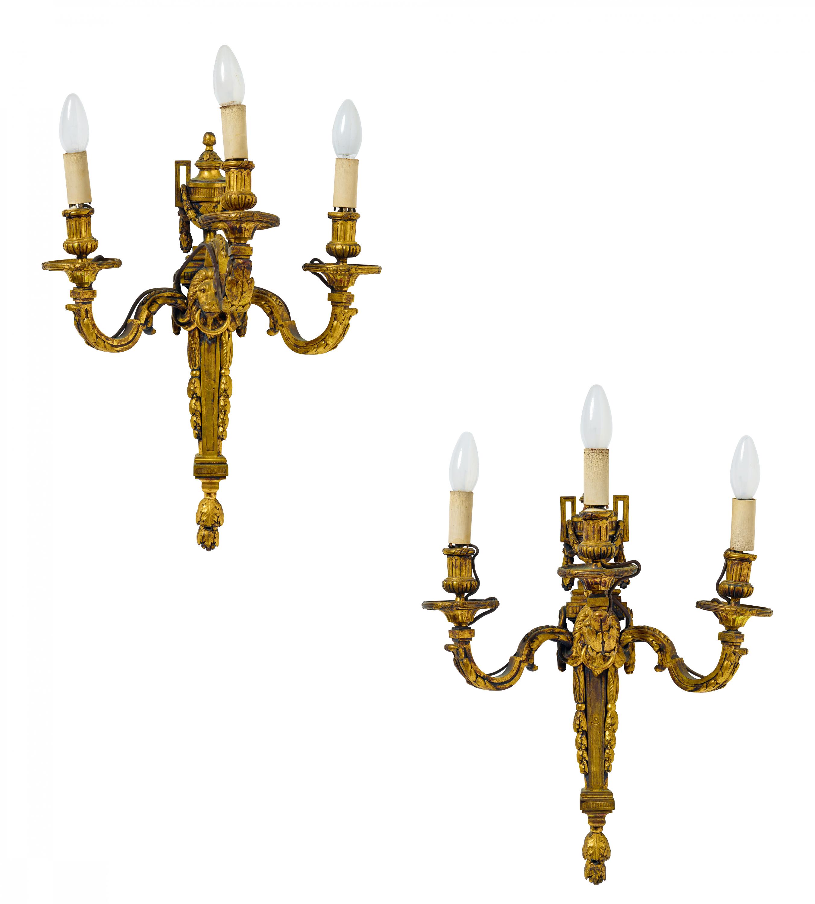PAAR GROßE WANDAPPLIKEN MIT LÖWENMASKARONS LOUIS XVI.