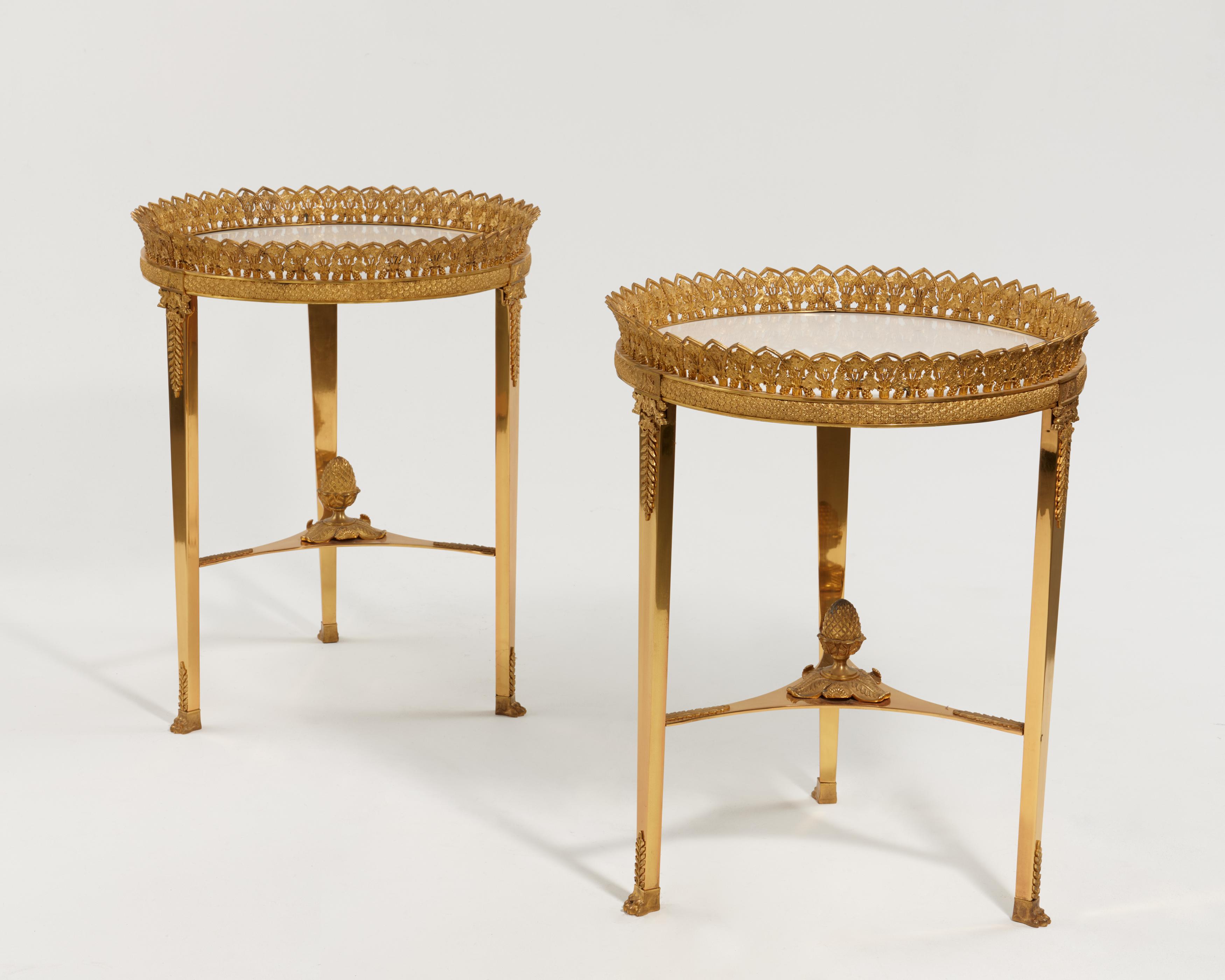 PAAR TISCHE STIL EMPIRE MIT MARMORPLATTE.