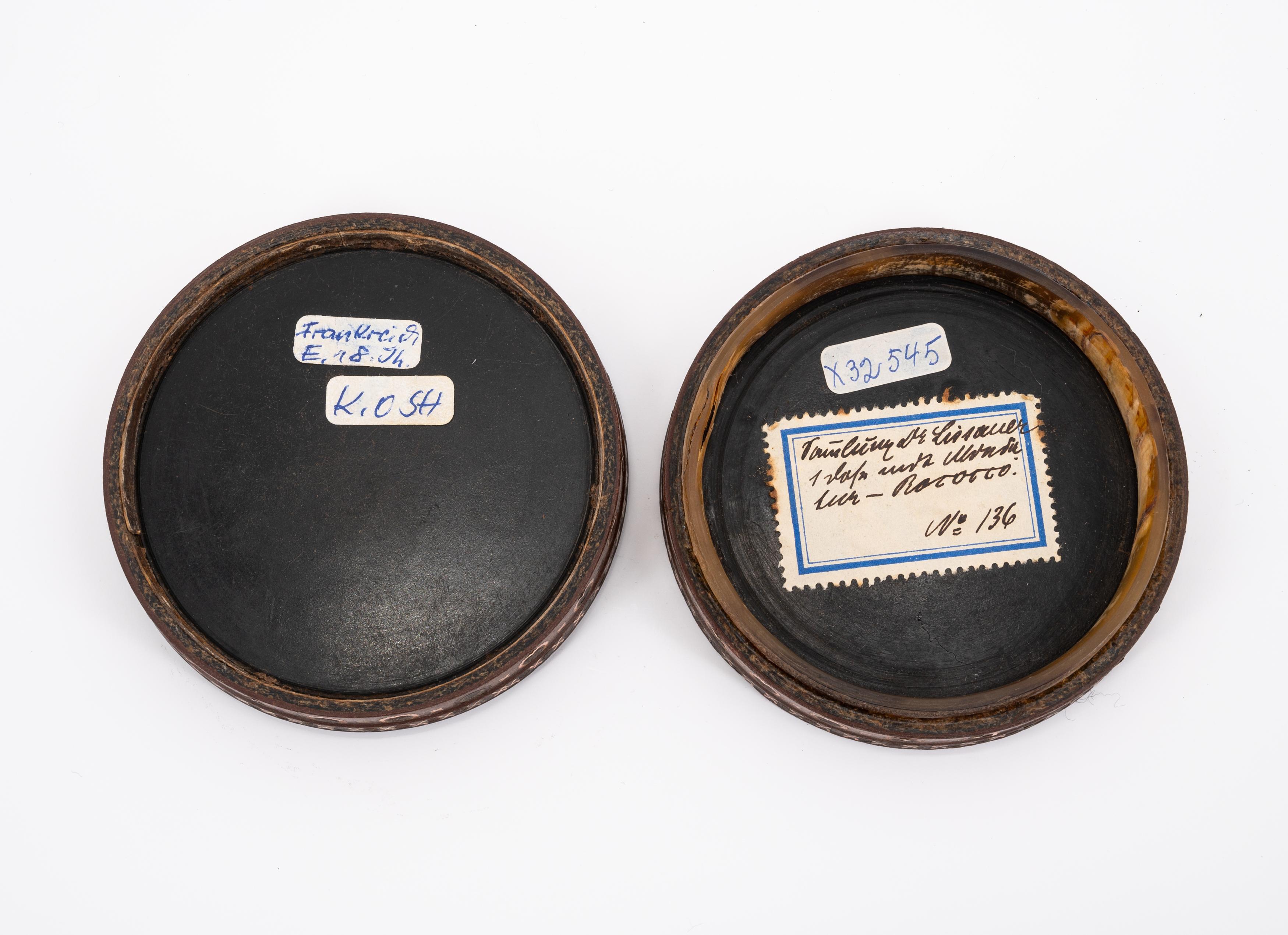 Technik: Horn, Rotgoldpiqué, Glasabdeckung, Metall.