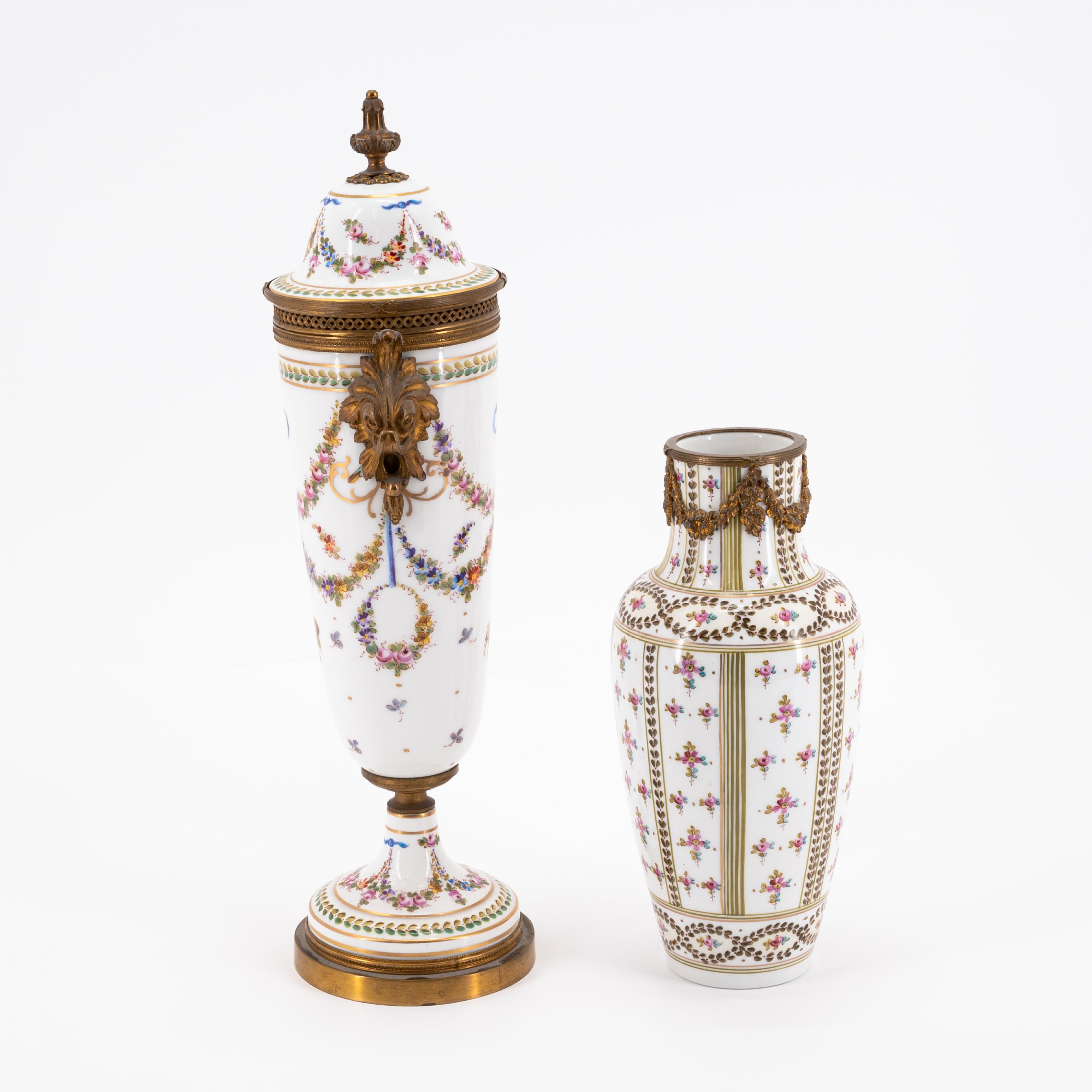 Technik: Porzellan, farbig staffiert. Bronzemontierung.