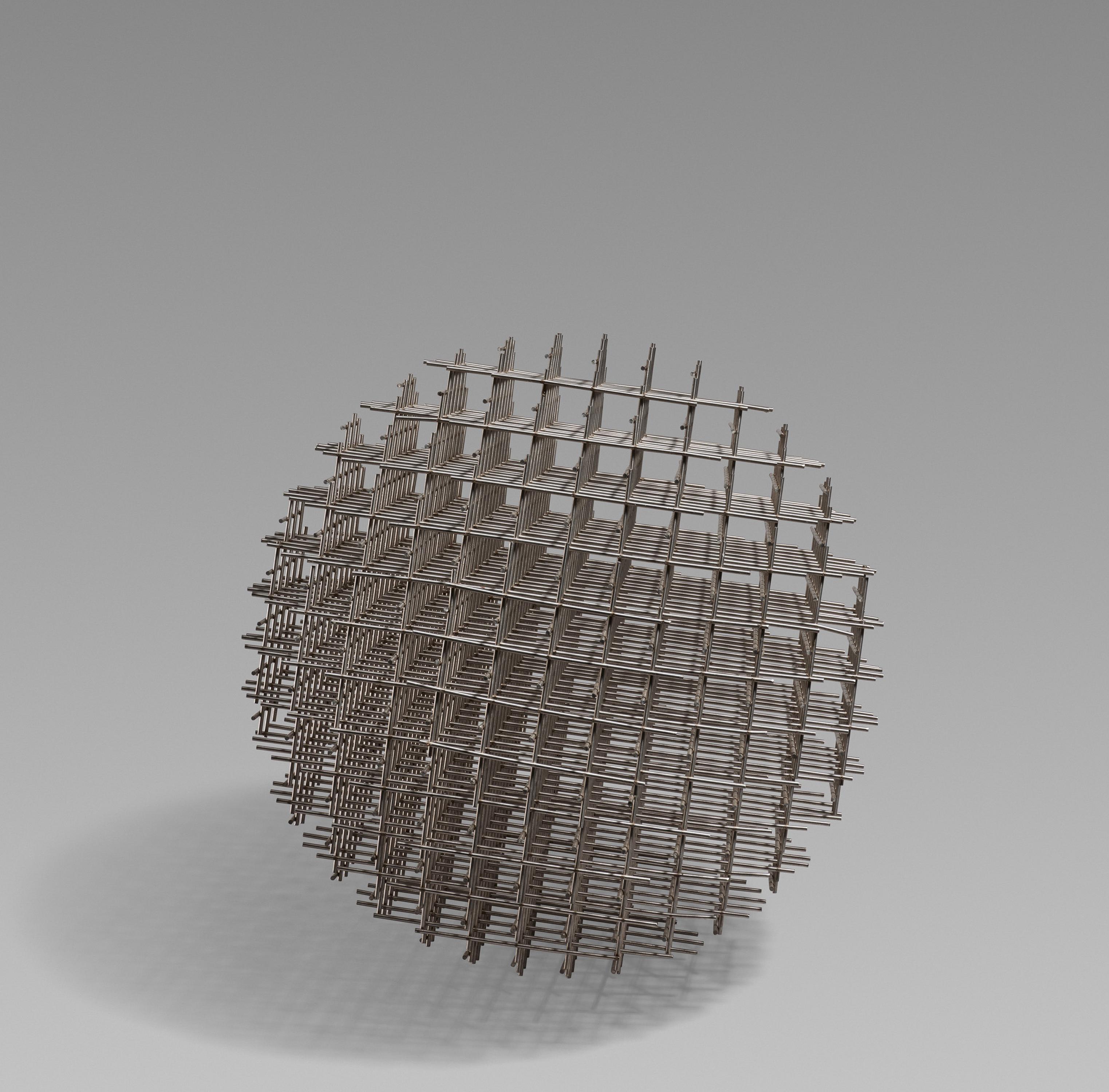 Die Form des Raumgitters, die aus der Übersetzung der Raster in den dreidimensionalen Raum gewonnen wurde, war 1962 entstanden. Eine große Ausführung befindet sich im Folkwang-Museum in Essen. Von ihm wurden später Modelle in unterschiedlicher Grösse angefertigt. François Morellet hat dazu bemerkt: "Von allen meinen Werken ist das Raumgitter sicher eines derjenigen, das dem ungeschulten Betrachter am besten gefällt, vielleicht weil man beim Anblick der ineinander verflochtenen Raster zu träumen beginnen möchte. Überdies sind alle Schweissnähte in Handarbeit ausgeführt worden, so dass das Werk modern und seriös zugleich erscheint." (Ausst.-Kat. François Morellet. Sur commande: Désintègrations architecturales et autres interventions en plein air, Calais 1982, S. 48).