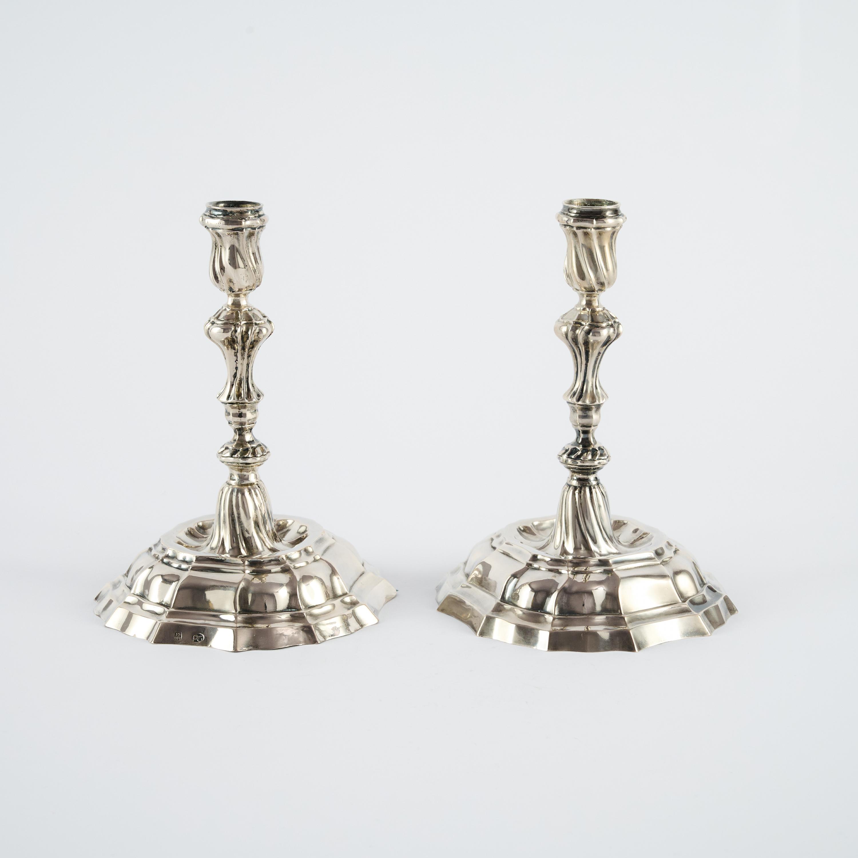 Beschreibung: Jeweils hoch gewölbter, passiger Fuß, mehrfach eingezogen. Der schlanke Balusterschaft mit