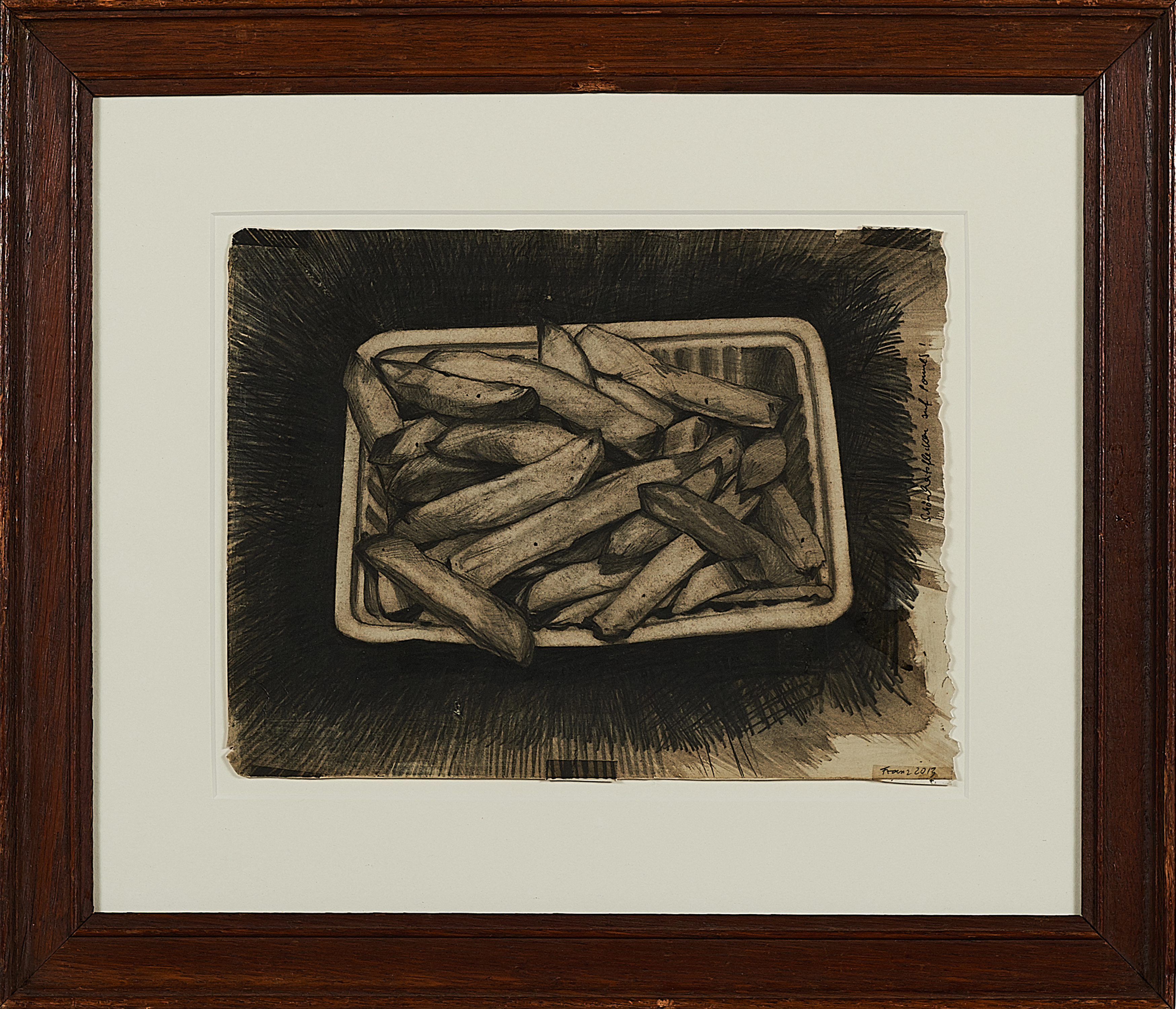 Bezeichnung: Signiert, datiert und betitelt unten rechts und am Rand: Franz 2013 Schönheitsflecken auf Pommes!. Sowie auf einem Etikett verso als "Moyenne" betitelt.
