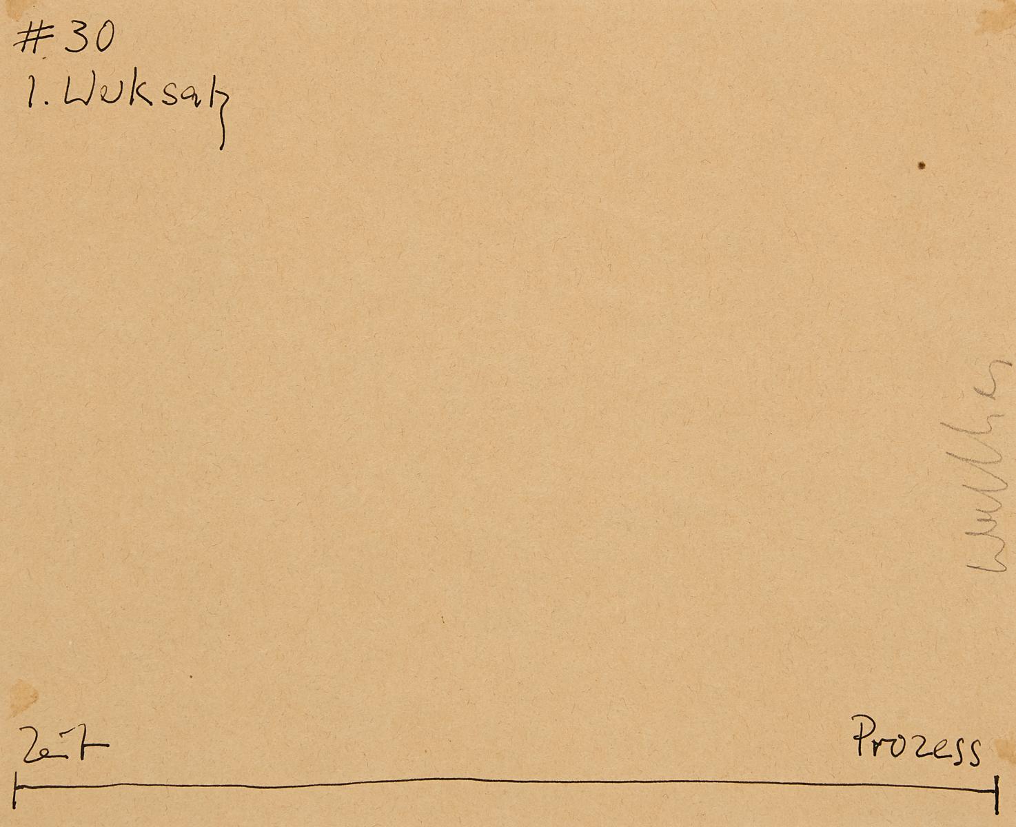 Zeit - Prozess, 1. Werksatz #30. Bleistiftzeichnung und handschriftlicher Text auf beigem leichten Karton. Montiert (Fotoecken) auf Karton mit Werkanweisung (40 x 30cm). 20 x 24,5cm. Signiert verso: Walther. Hier betitelt.