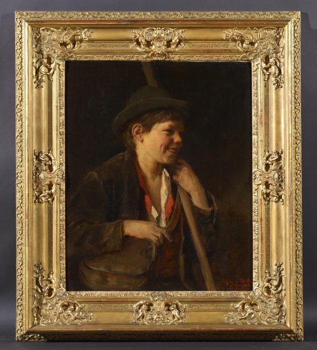 Tiroler Hirtenjunge. Signiert und datiert. unten rechts auf Defregger 1869. Öl. Leinwand x Doubliertcm. 6958 Rahmen:
