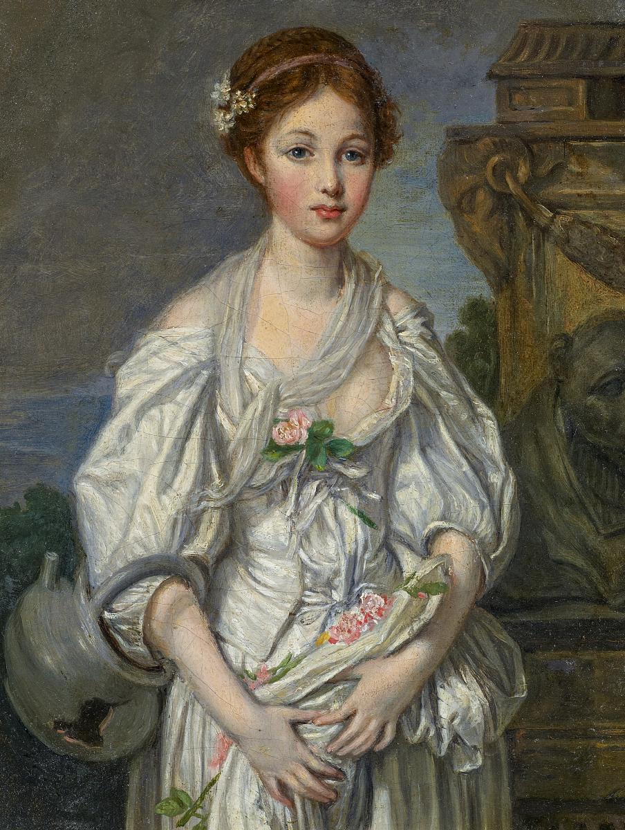 Junge Dame mit zerbrochenem Krug. Nach Jean Baptiste Greuze. Öl auf Leinwand. Auf Karton gelegt. 25 x 20cm. Rahmen.