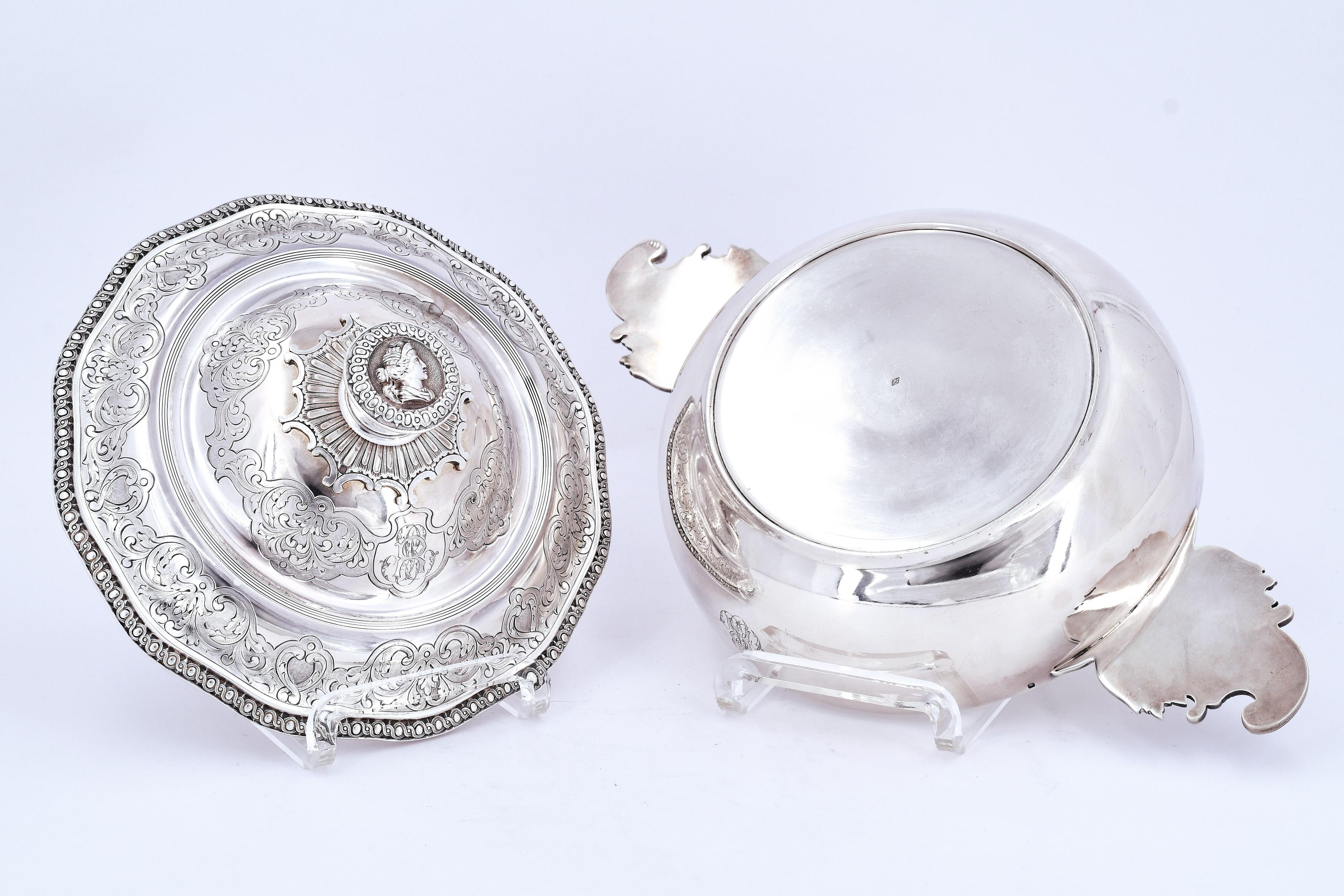 Beschreibung: Auf Deckel und Unterteil je ligiertes Monogramm.