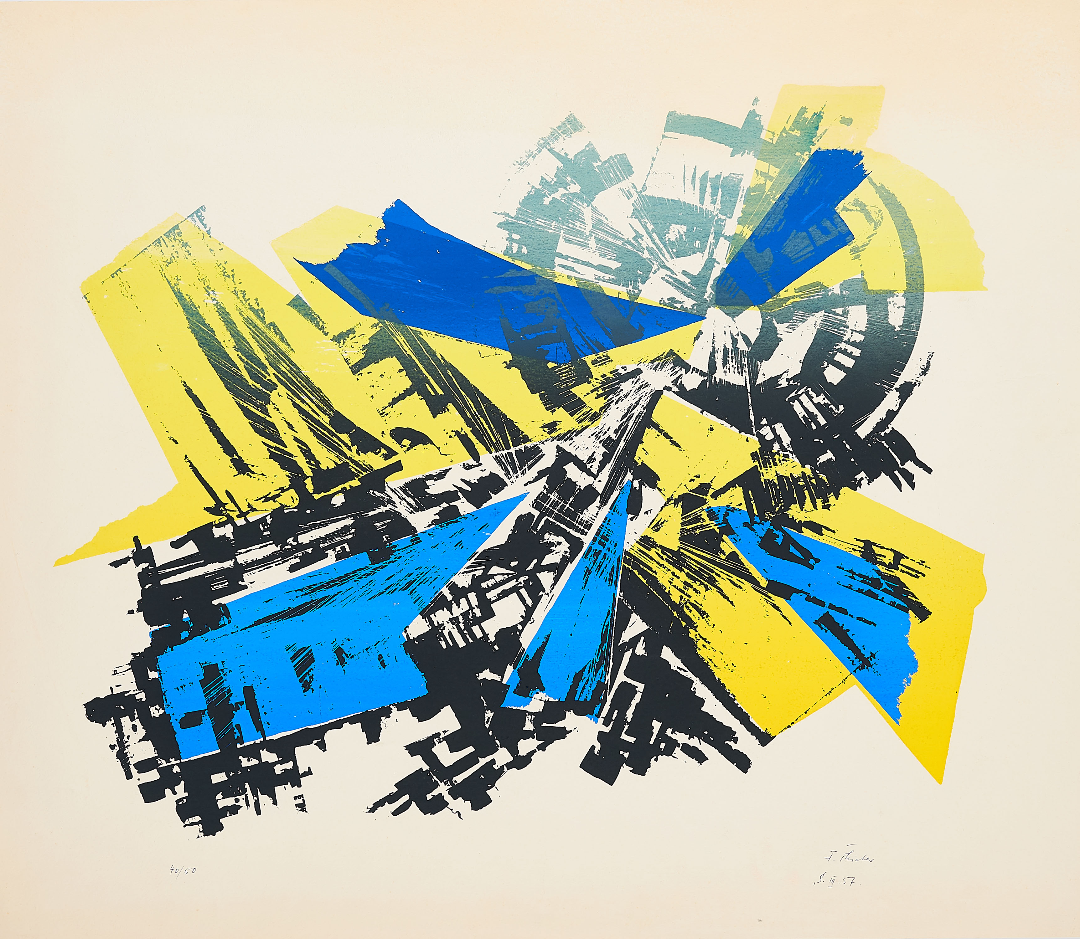 und nummeriert. Ex. 30/30. b) Ohne Titel. 1957. Farblithografie auf Velin. 52 x 64cm (65 x