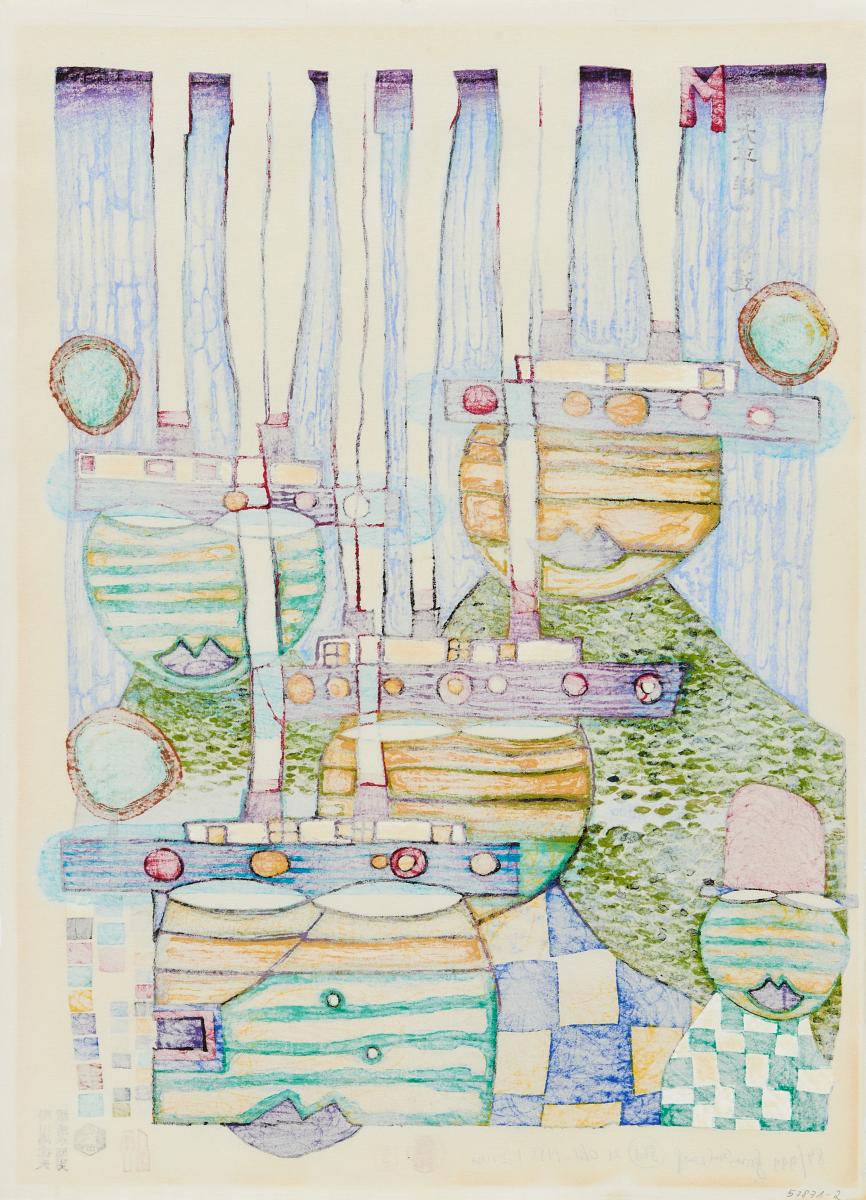 Pacific steamer. 1985. Japanischer Farbholzschnitt auf Japan. 52 x 39,5cm (57 x 42cm). Signiert, datiert, bezeichnet und nummeriert. Gruener Janura AG, Glarus/Schweiz (Hrsg.). Ex. 84/999.