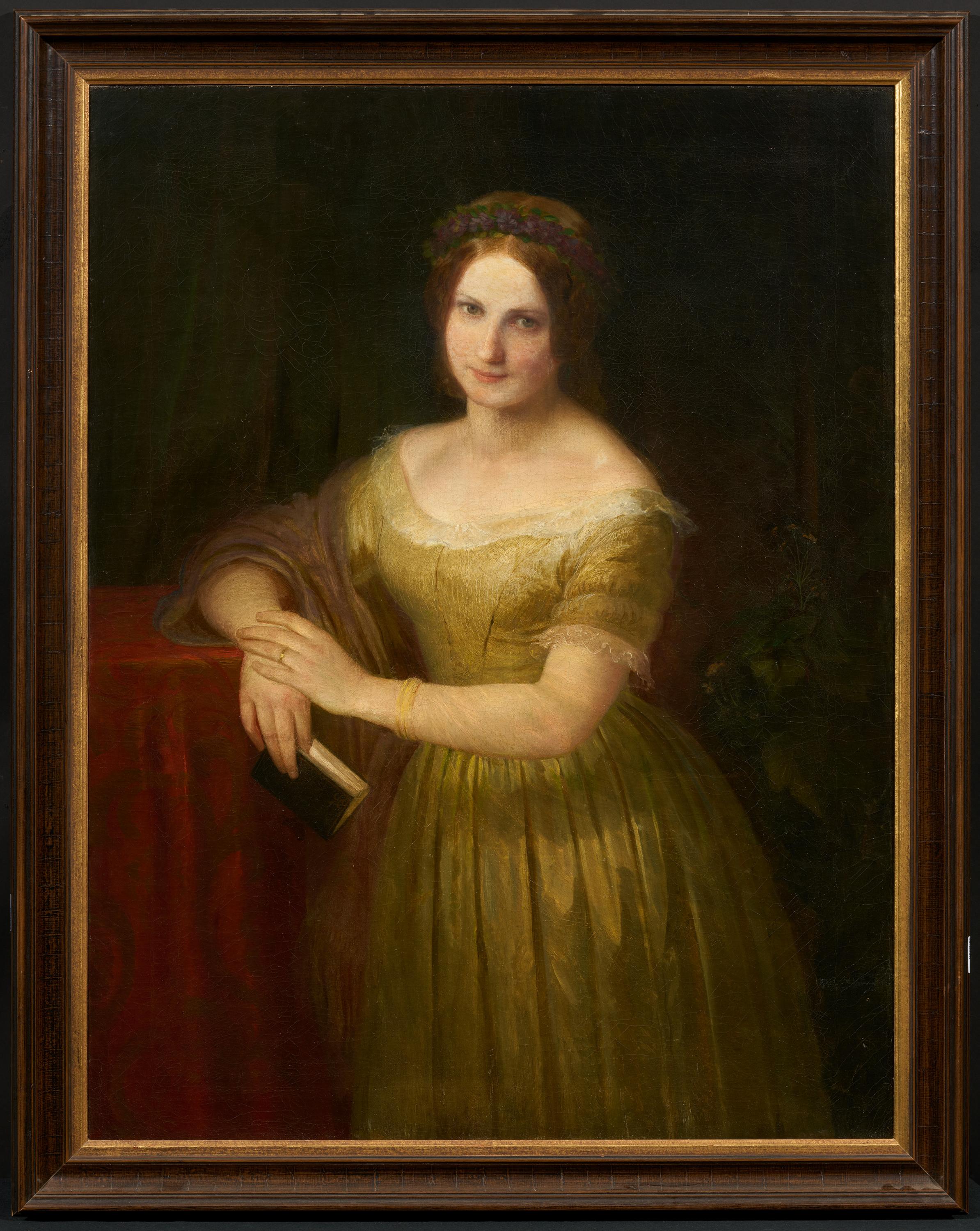Titel: Porträt einer jungen Dame mit Büchlein.