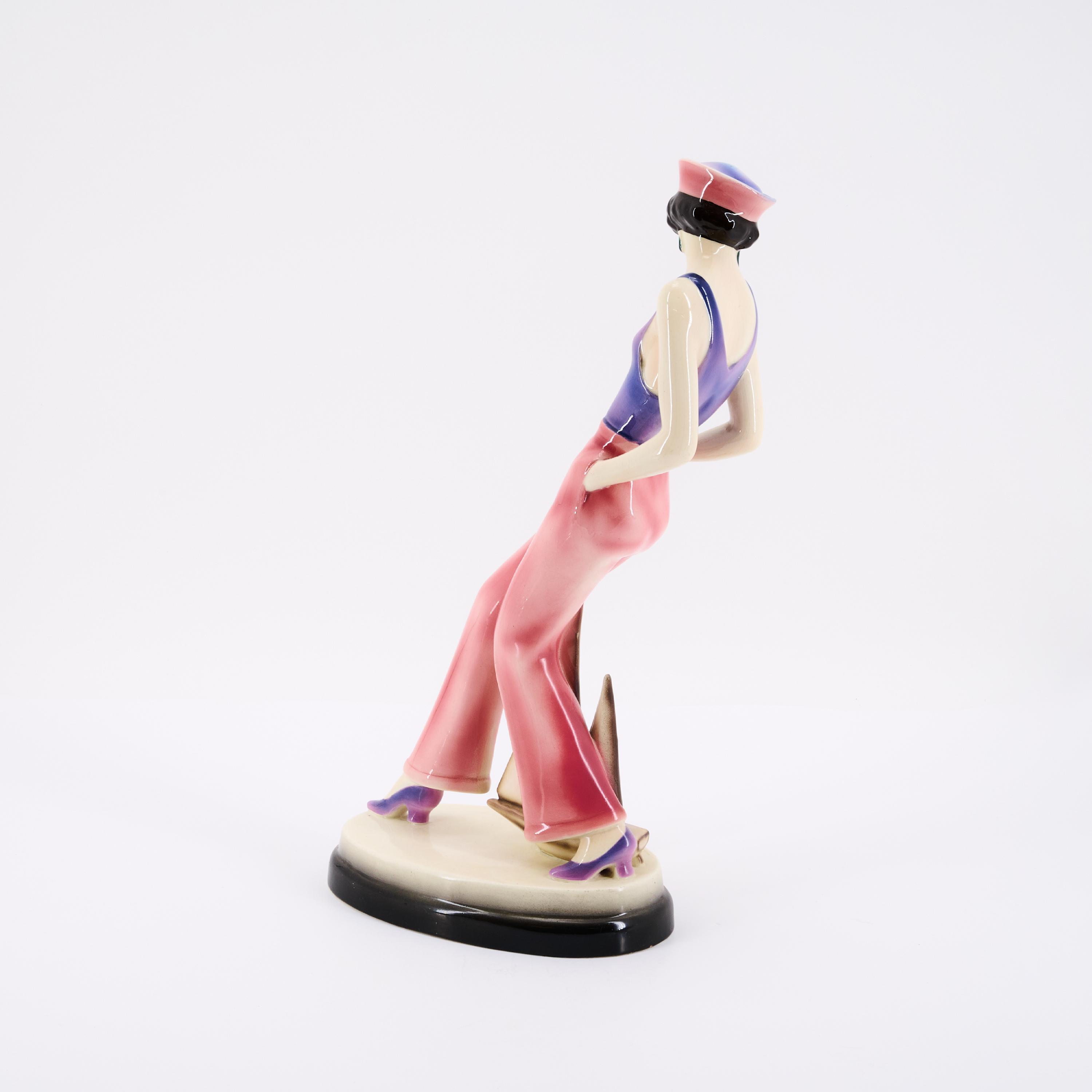 Marke: Schwarzer Manufakturstempel sowie 'Hand-Decorated' und 'Made in Austria', Modellnr. '5818/143/6', verschiedene Ritz- und Pinselzeichen. Auf Sockel bez. 'Dakon'.