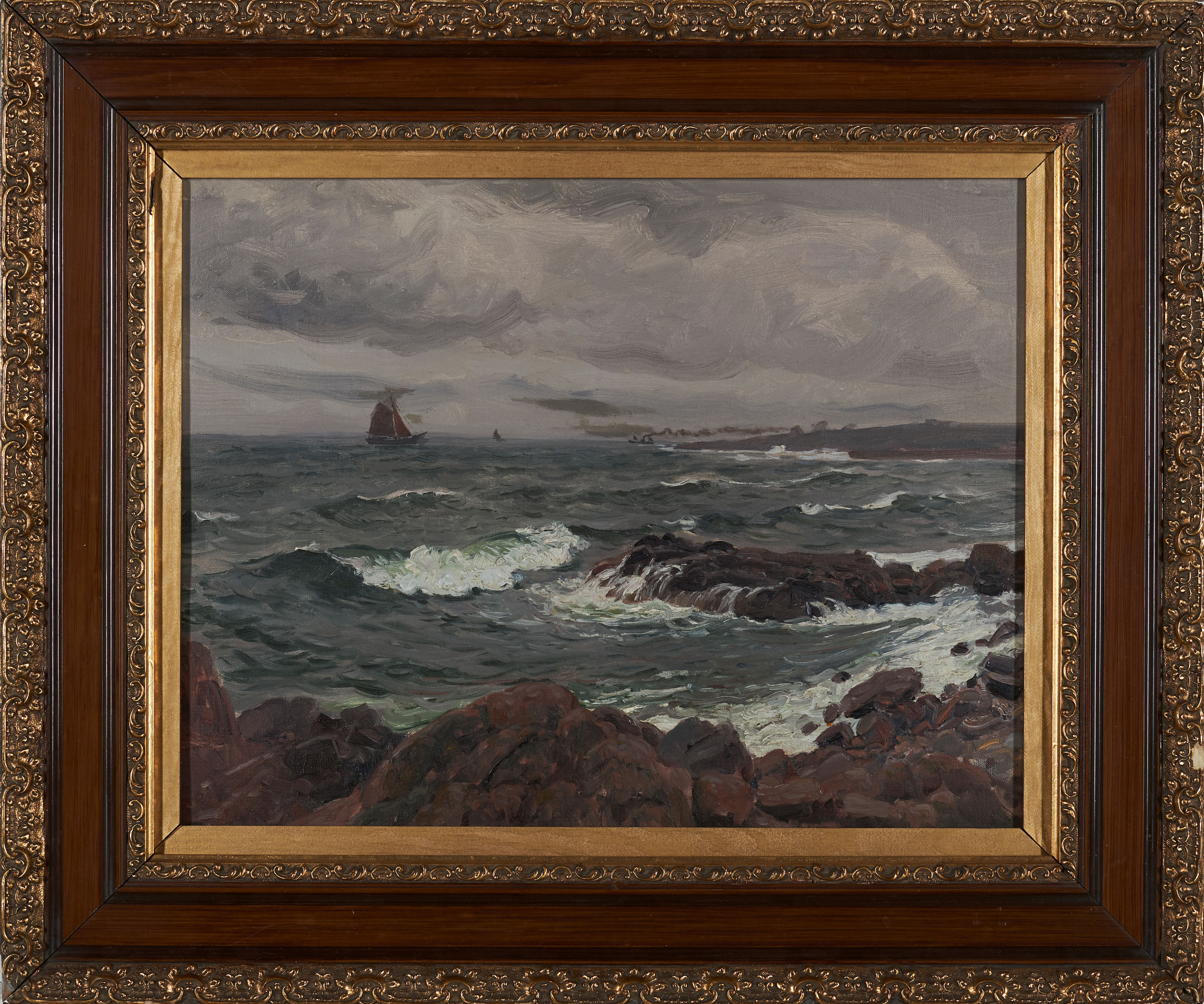 In den vorliegenden Gemälde kommt Kallmorgens Vorliebe für wolkenbehangene, weitläufige Seeansichten zum Tragen, die insbesondere in den späteren Darstellungen des Hamburger Hafens ein zentrales Motiv darstellt.
