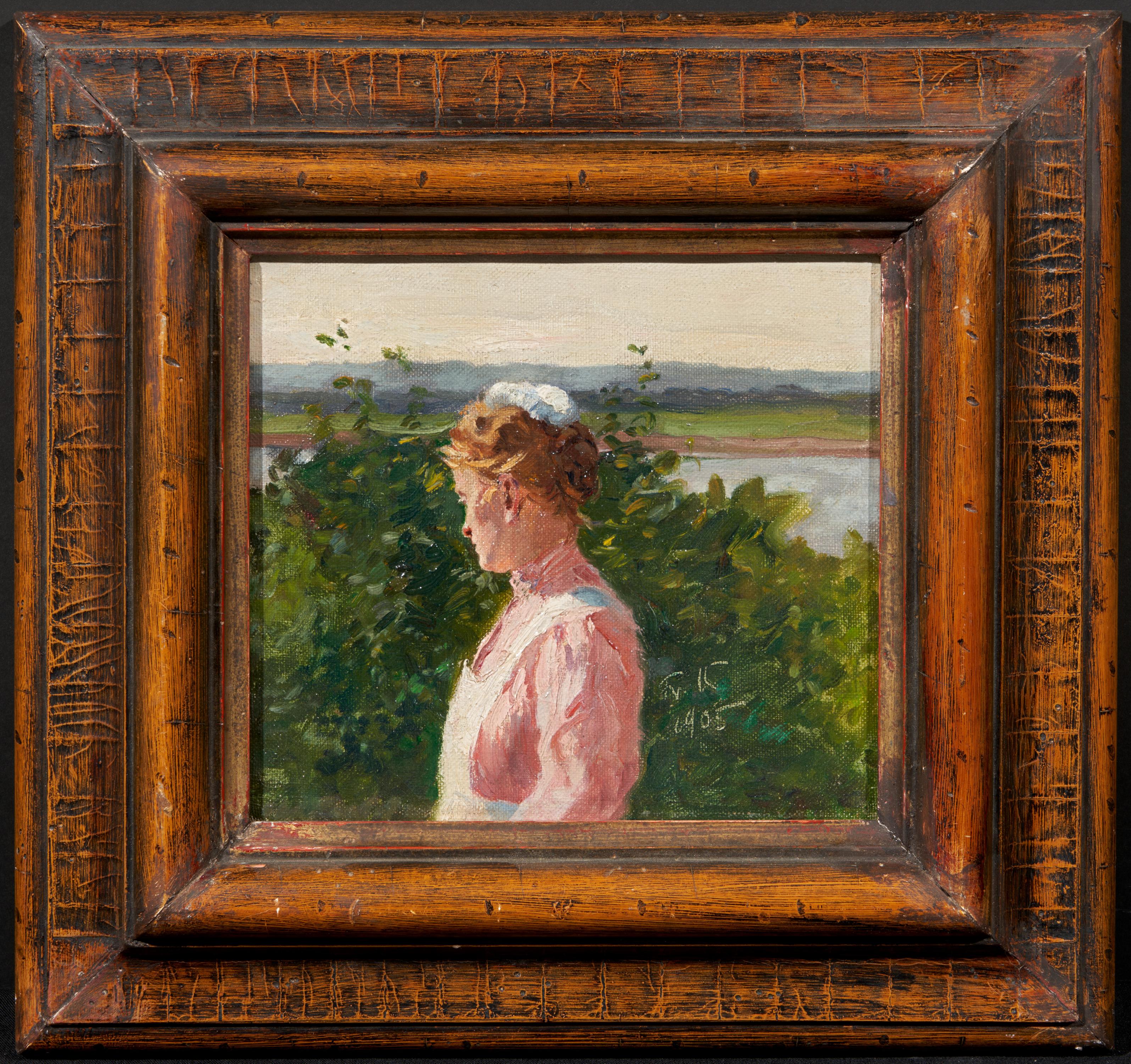 Titel: Damenporträt im Garten oberhalb der Elbe.