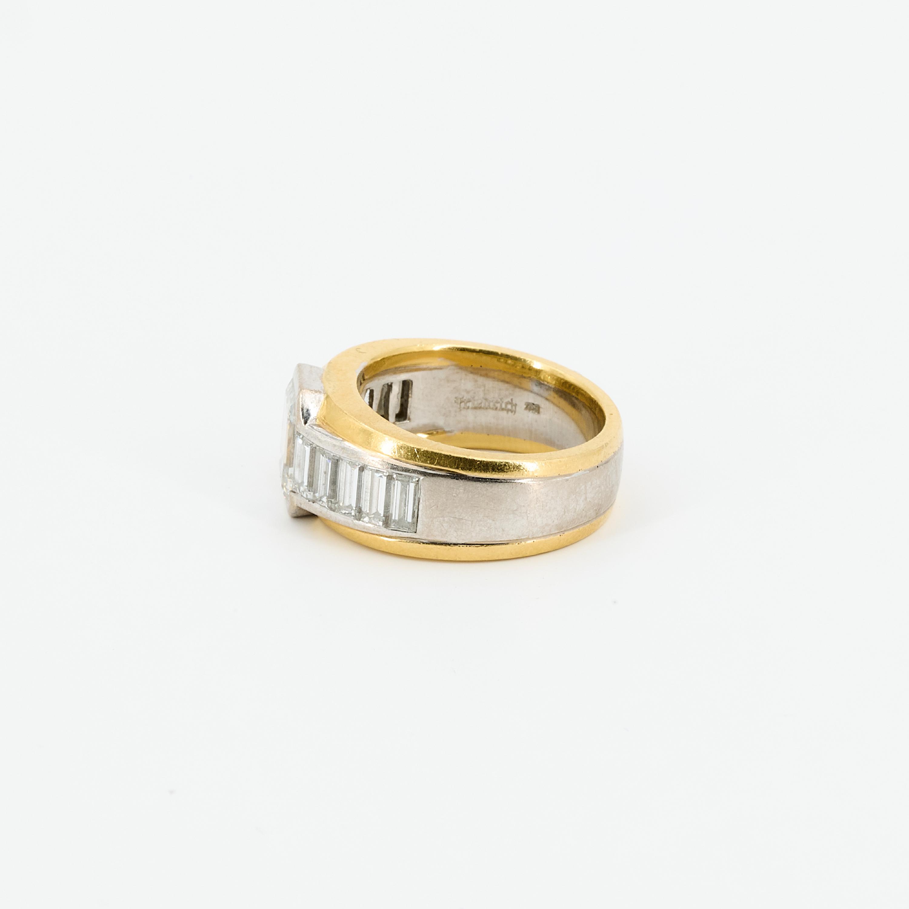 Diamanten: 1 Diamant im Emerald-Schliff ca. 1,5 ct., H/VVS2-VS1, 10 Diamanten im Baguette-Schliff zus. ca. 1,1 ct., H/VS.