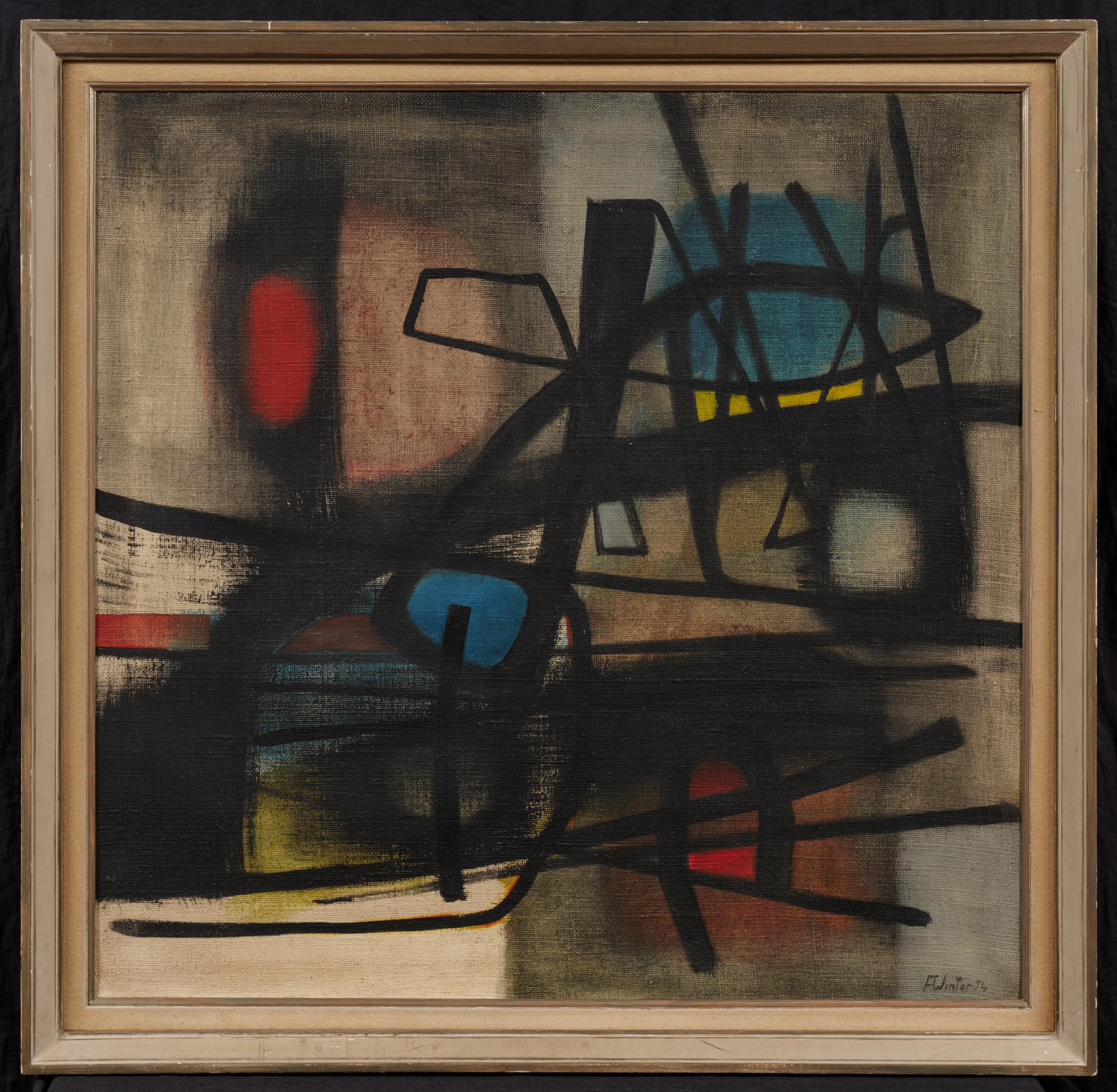 Bezeichnung: Signiert und datiert unten rechts: FWinter 52. Zudem betitelt und signiert verso mittig: Bewegung aus Weiss Winter.