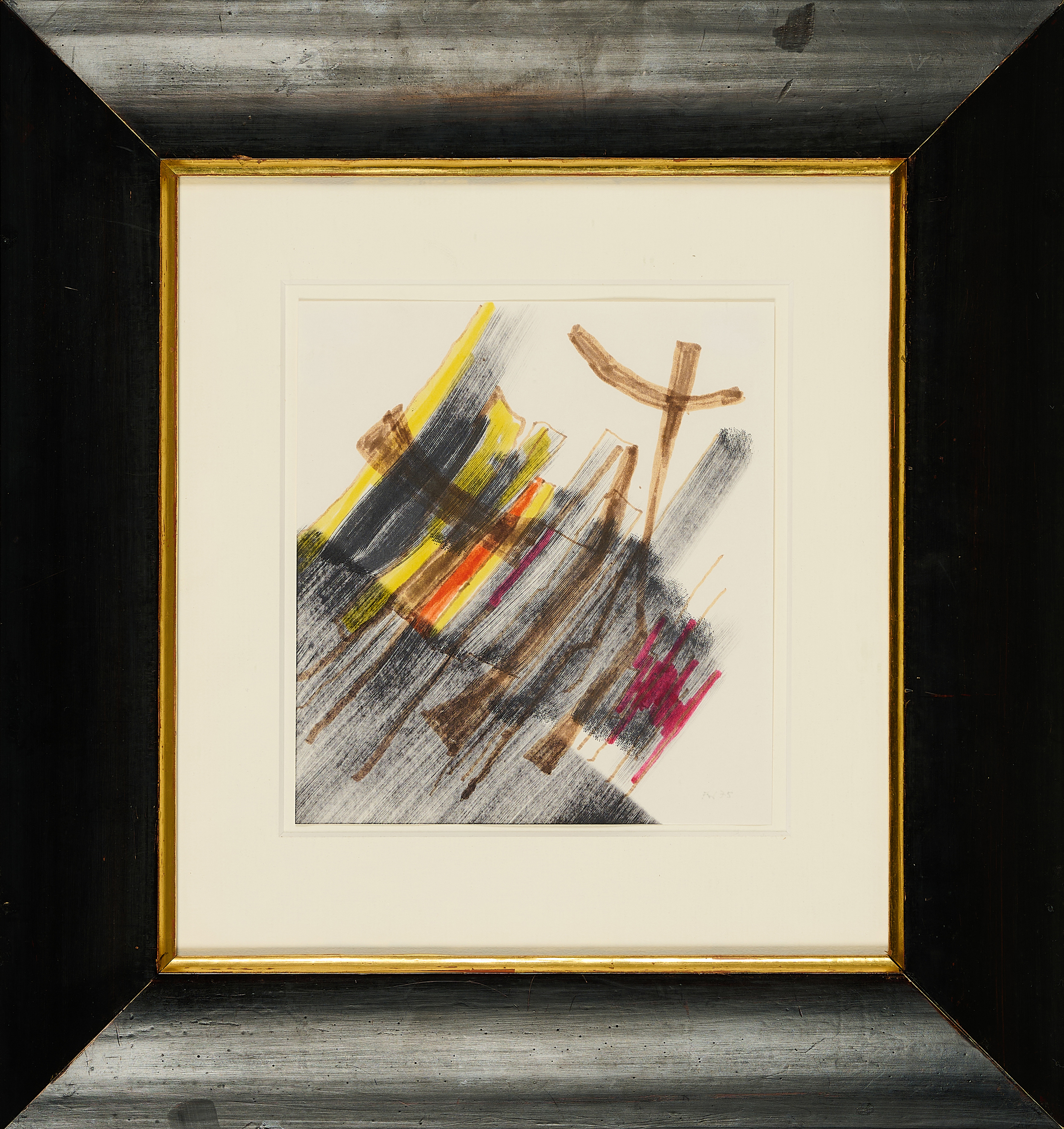 Blatt minimal gewellt. An der oberen linken Ecke eine Druckstelle. Ansonsten sehr guter Zustand. Das Werk wurde für die Katalogbeschreibung nicht ausgerahmt.