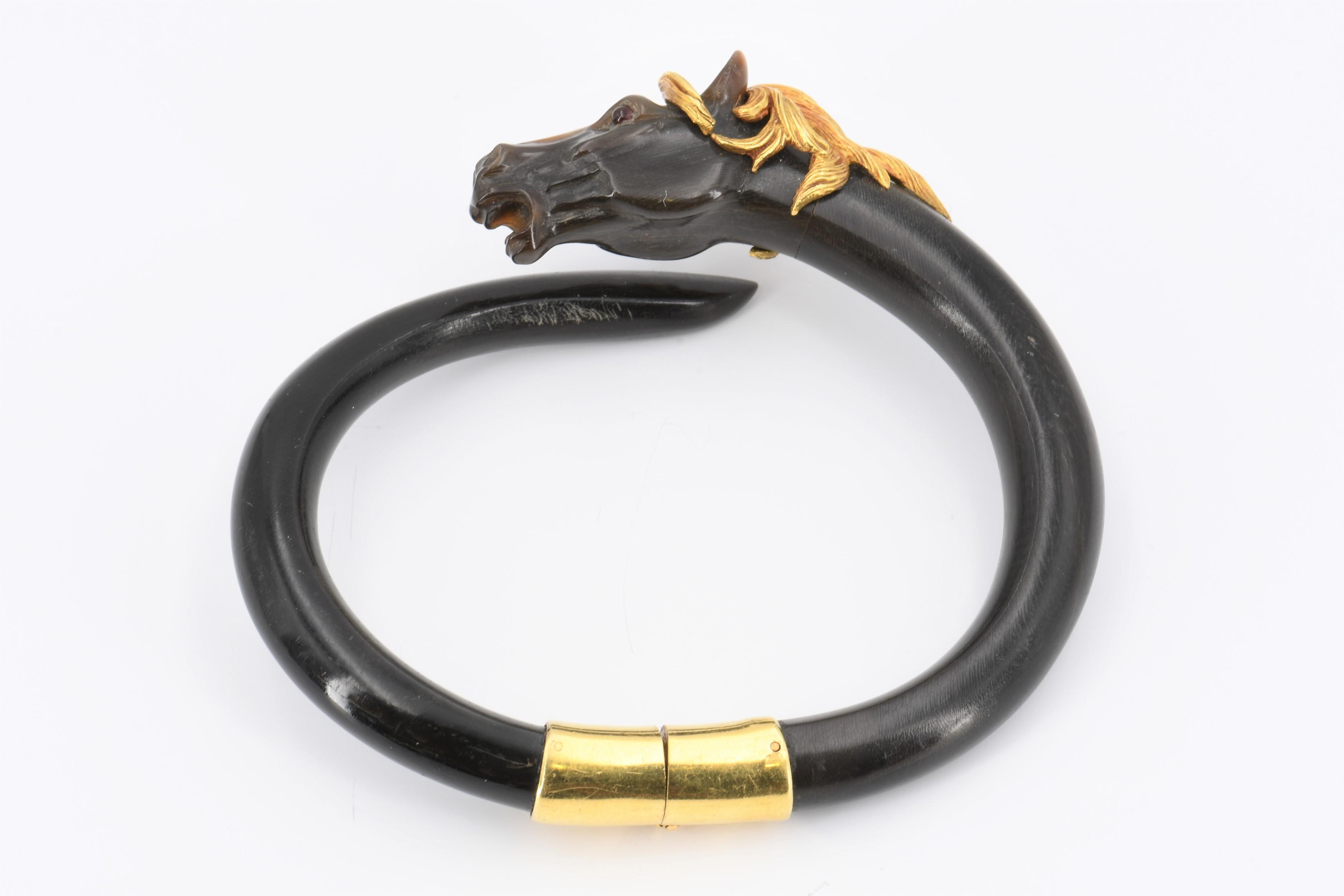 Org. Substanzen: Armreif aus Horn, Kopf wohl anderes Material, evtl. Achat.