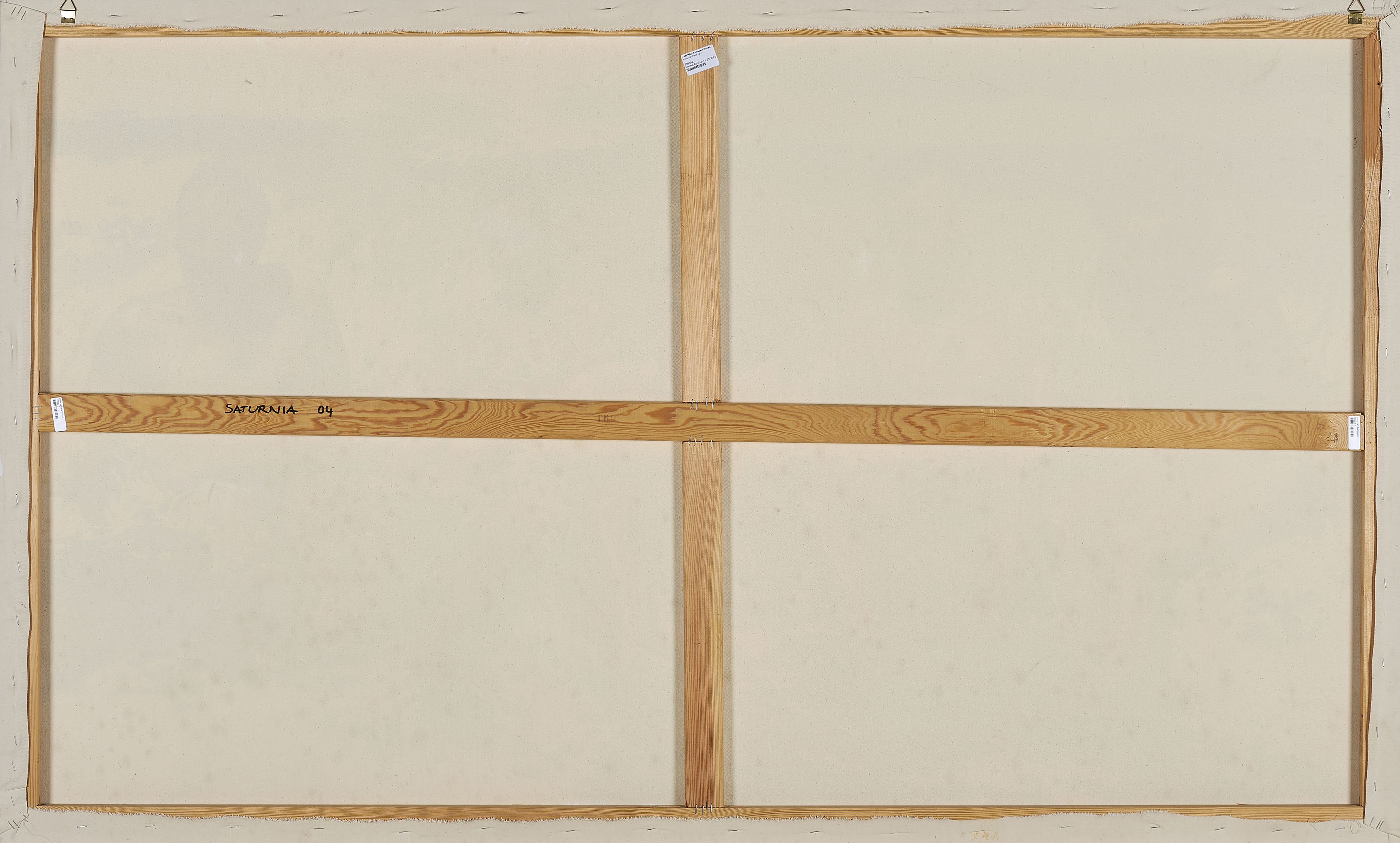 Bezeichnung: Monogrammiert und datiert unten rechts: G.O.V.D 04. Hier zudem mit Künstlersignet versehen. Sowie betitelt und datiert verso auf dem Keilrahmen: SATURNIA 04.