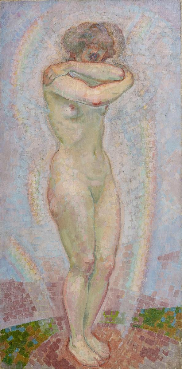 Aktstudie. Entwurf für ein Wandgemälde?. Öl auf Leinwand. 127 x 64cm.