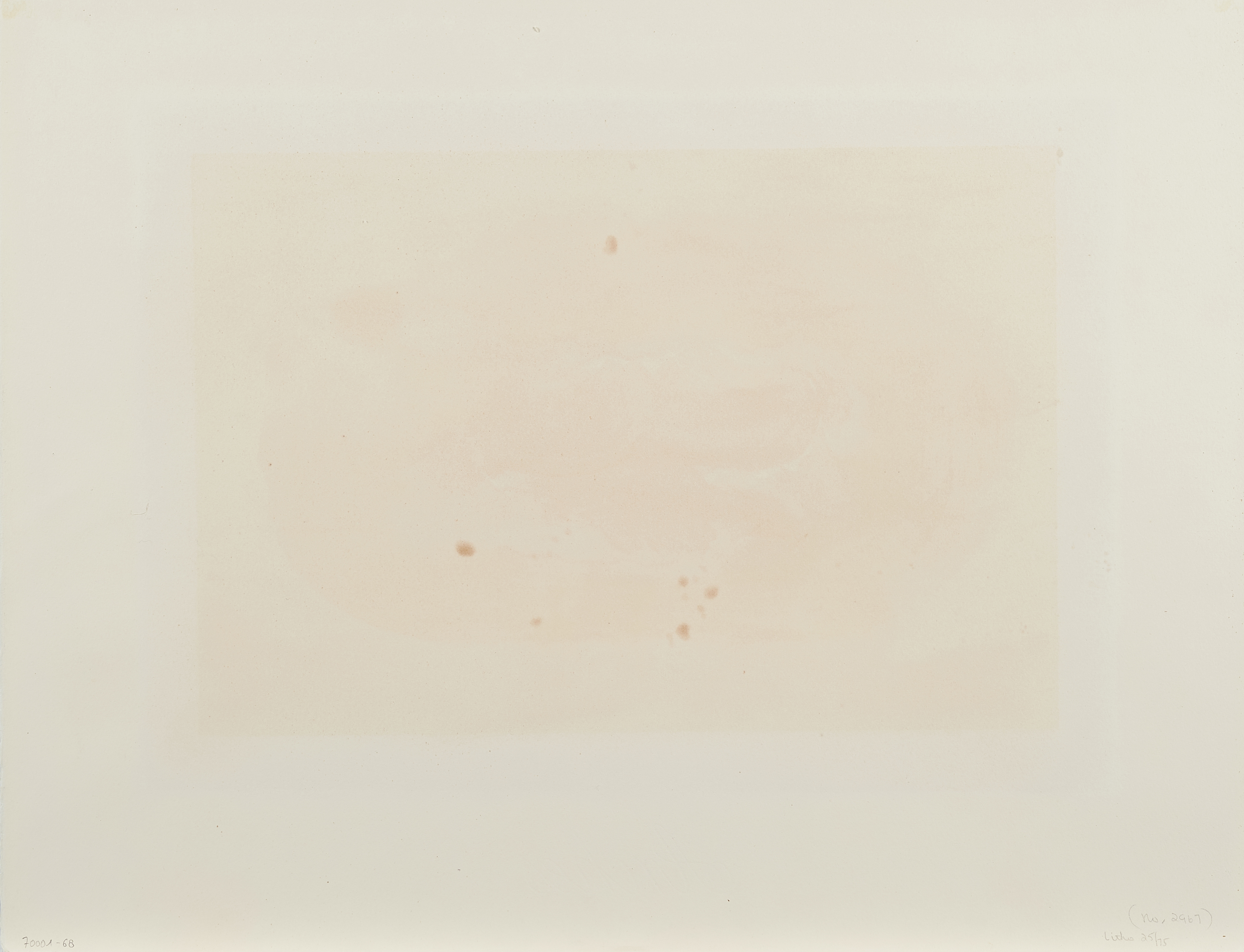 Blatt im ehemaligen Passepartoutausschnitt gebräunt. Hier leicht stockfleckig. Vereinzelte Stockflecken auch in den Randbereichen.