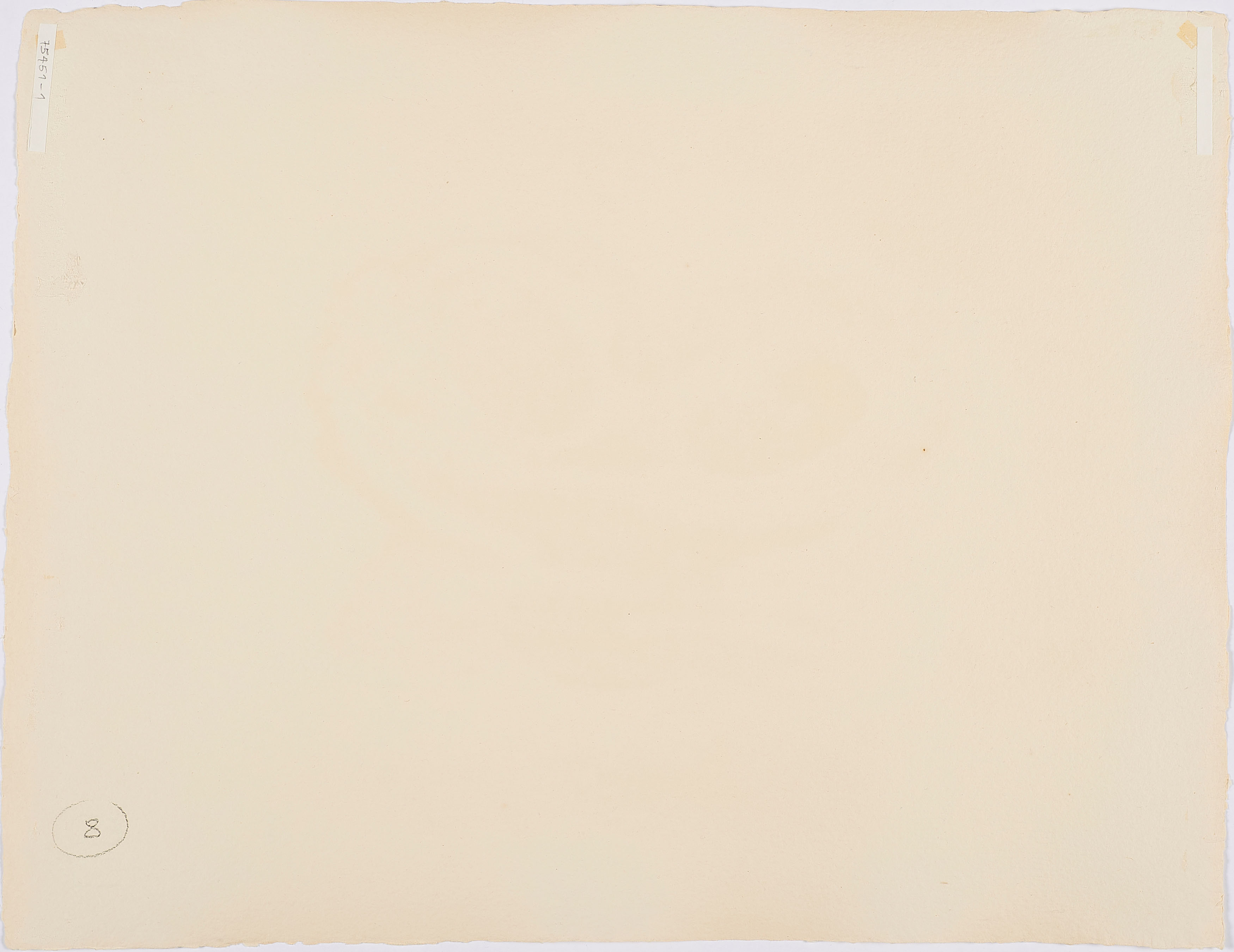 Blatt leicht und unregelmäßig gebräunt. Herstellungsbedingt minimal gewellt. Minimale Bestoßung an der oberen Kante links und an der unteren Kante links. Verso Reste alter Montierung sowie minimal gebräunt und ein kleiner Stockfleck. Ansonsten guter Zustand.