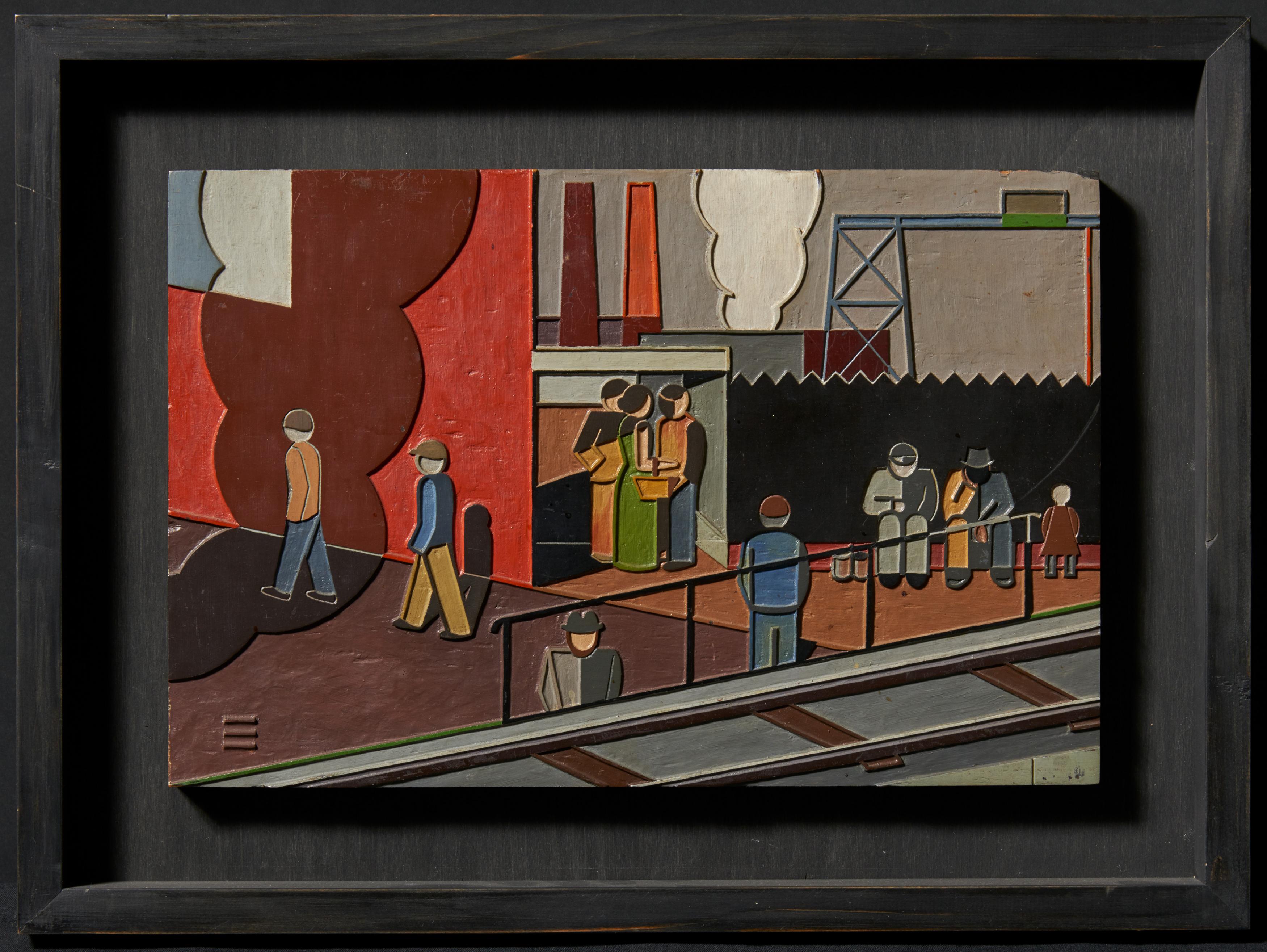 Bezeichnung: Signiert, datiert und betitelt verso: G. Arntz 1927 -Mittag vor der Fabrik-.