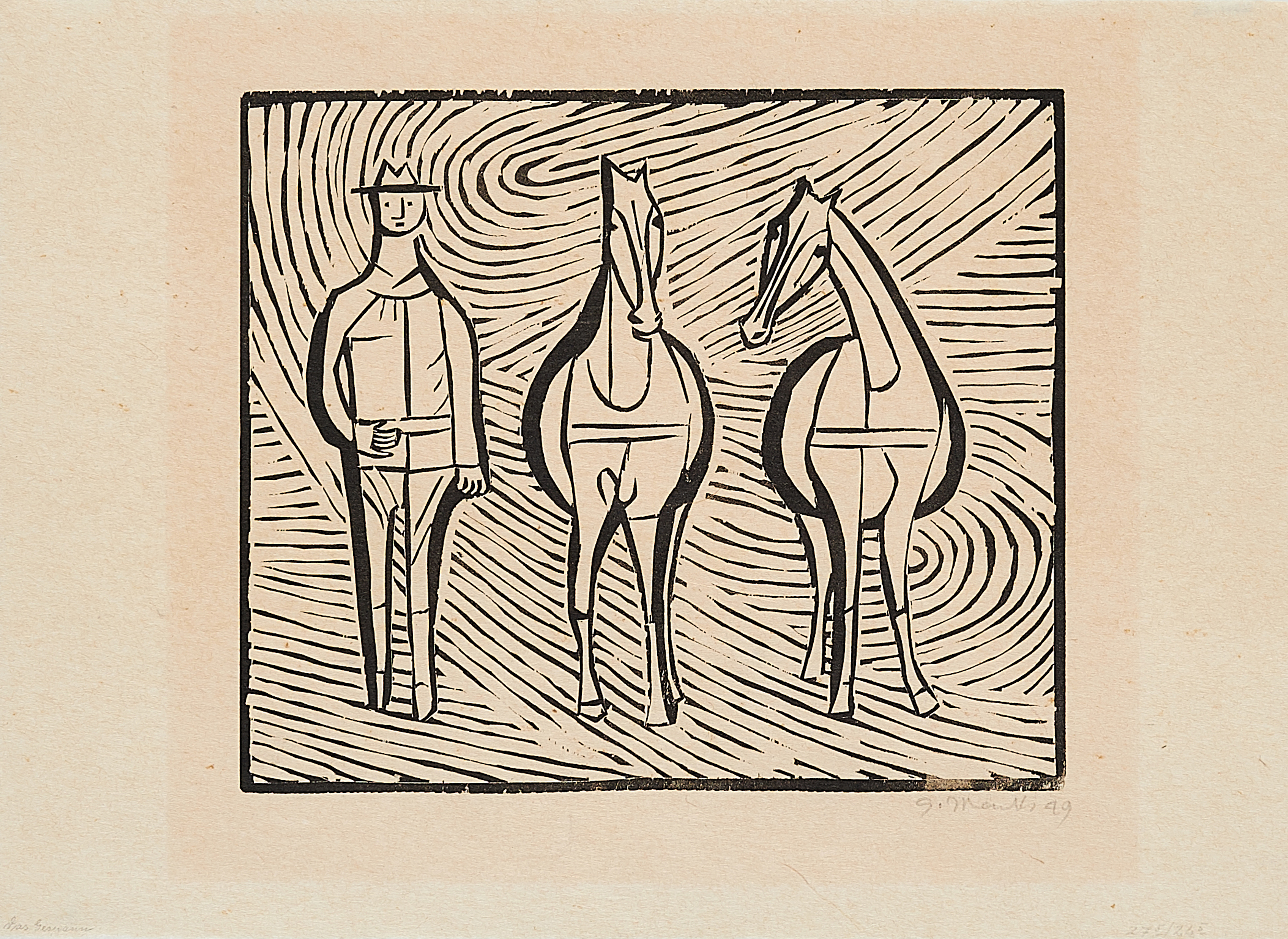 Signiert und nummeriert. Ex. 8/50a. b) Das Gespann. 1949. Holzschnitt auf Japan. 20 x 23cm