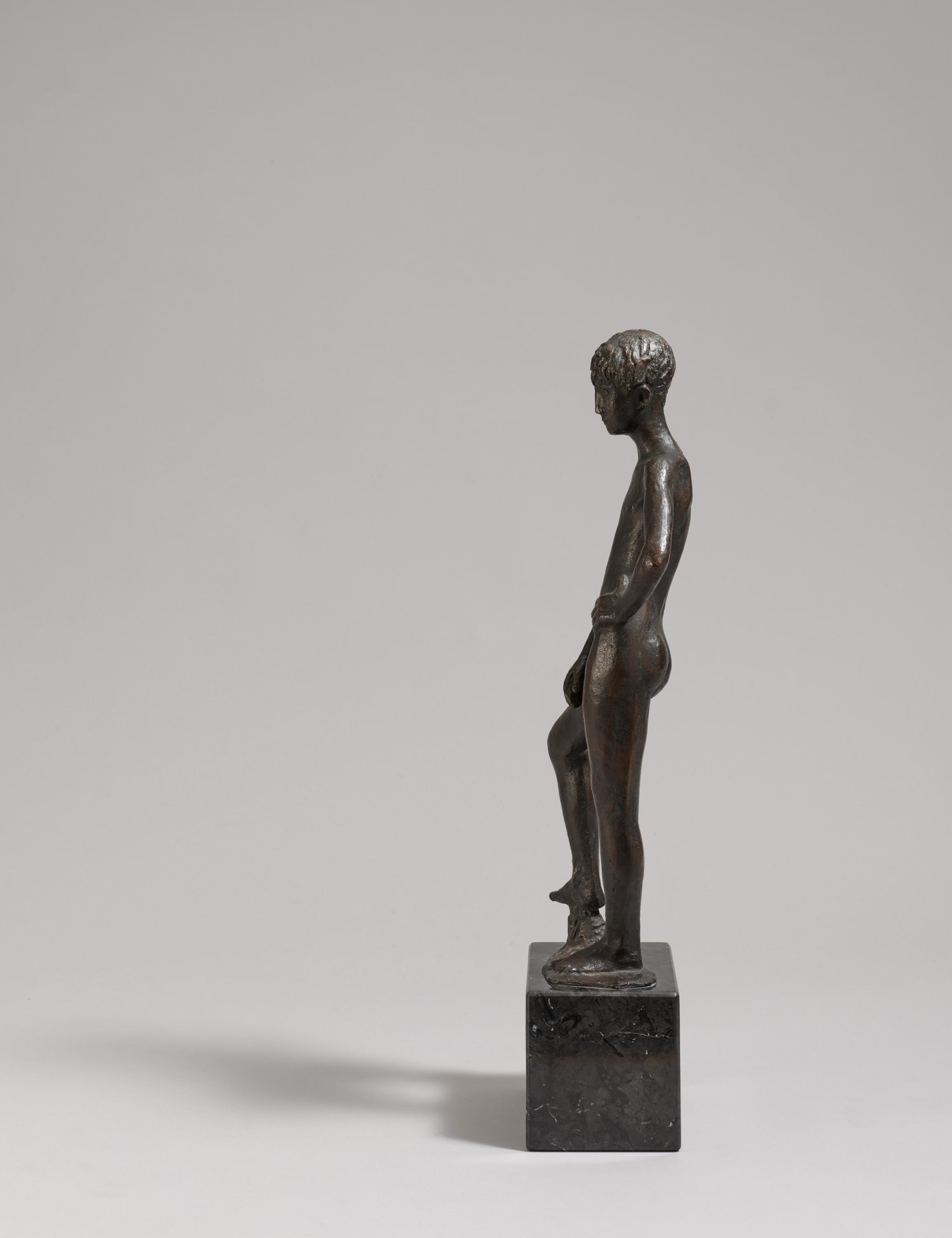 Bezeichnung: Künstlersignet auf der Plinthe neben dem rechten Fuß: Sockel/Rahmen: Sockel: 12 x 16 x 11,5cm (Gesamtmaß: 61 x 21 x 11,5cm).
