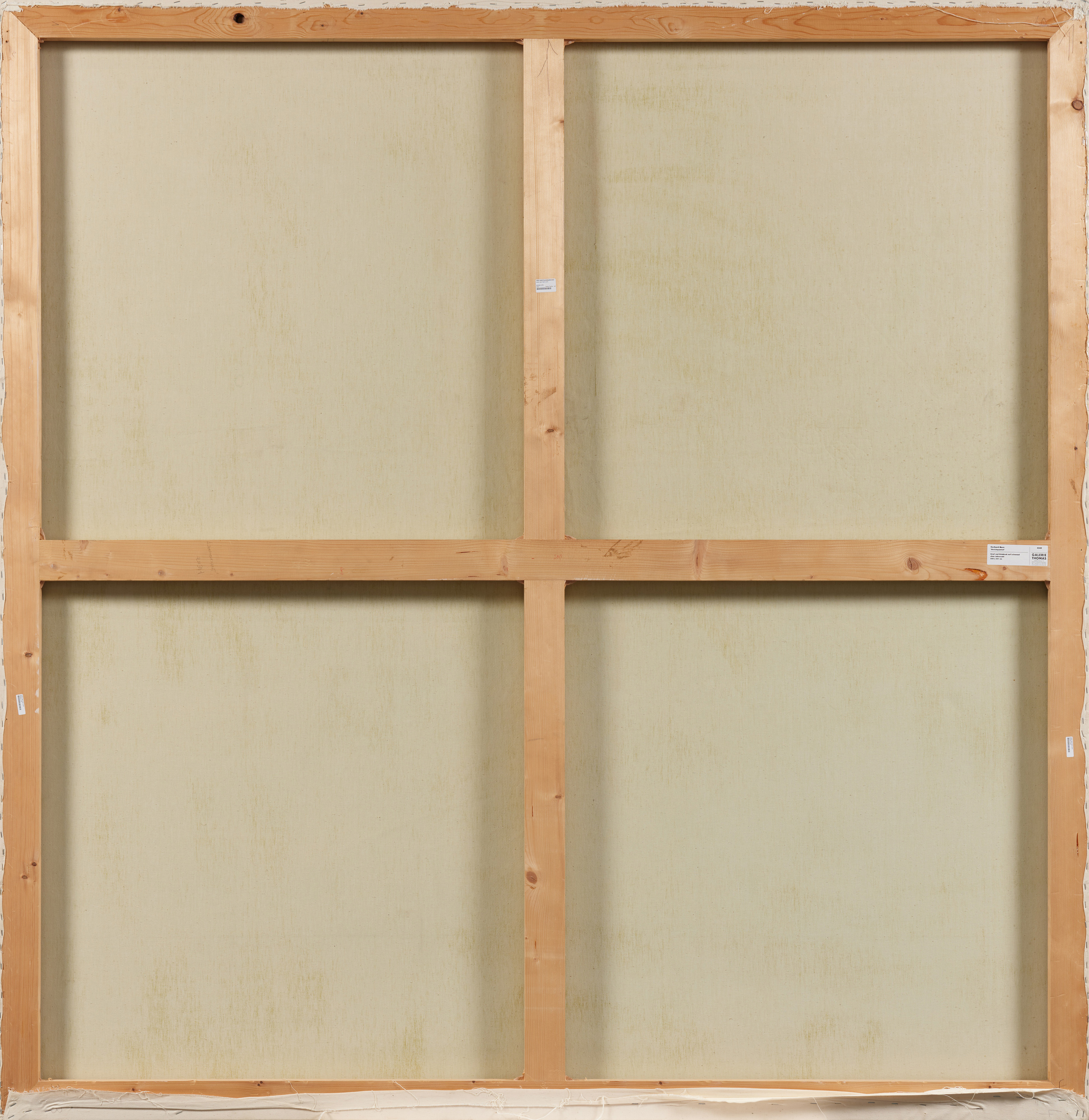 Geringe Leinwandspannung, daher leichtes Durchdrücken des Keilrahmens. Eine kleine Delle im unteren linken Bildbereich. Kleine Farbabplatzung an der unteren linken Ecke. Minimale Bereibung im unteren linken Bildviertel. Partiell leichtes Krakelee. Verso minimal stockfleckig. Ansonsten guter Zustand.