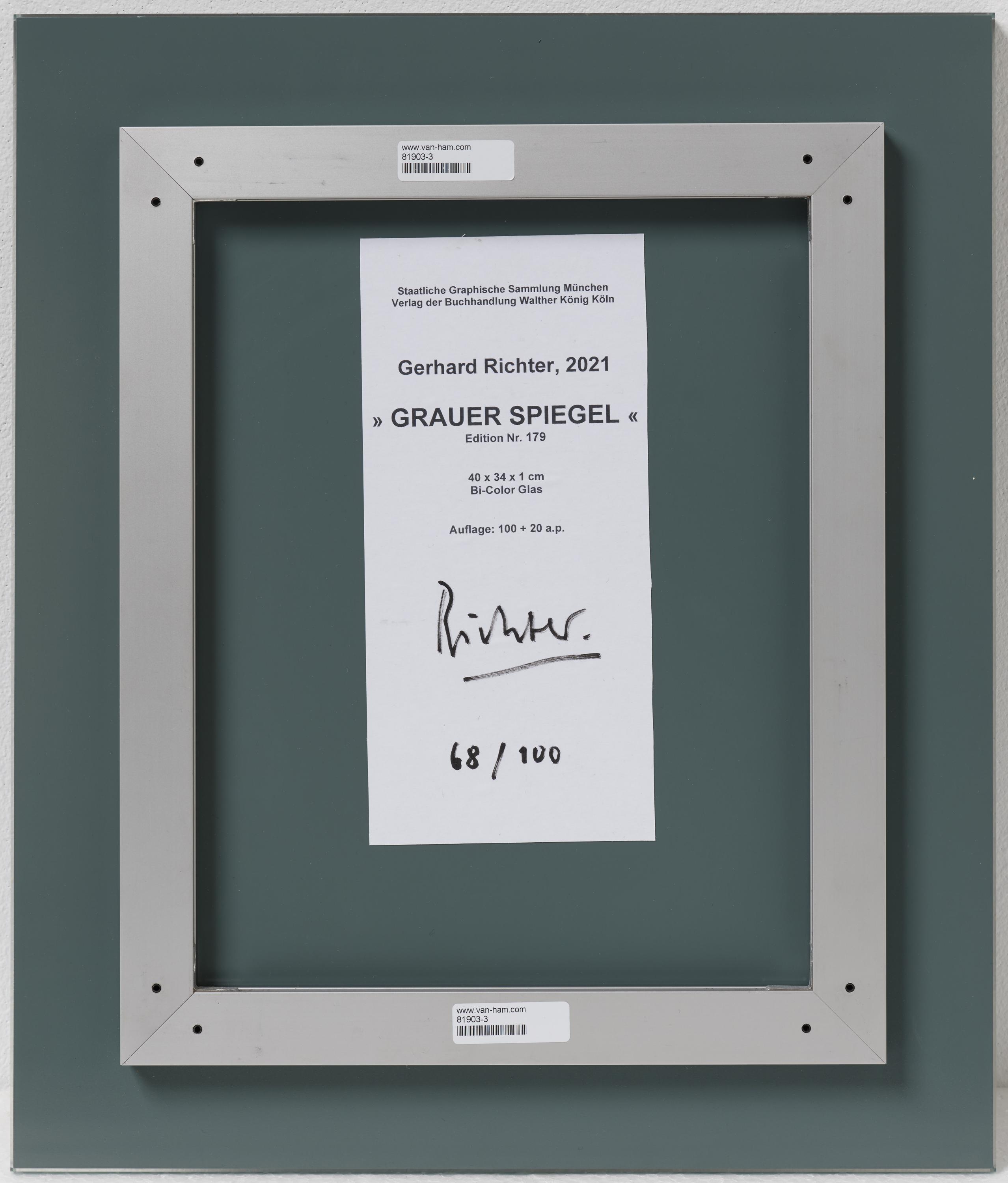 Bezeichnung: Signiert und nummeriert verso auf Editionsetikett: Richter 68/100. Hier zudem mit typographischen Angaben zur Edition.