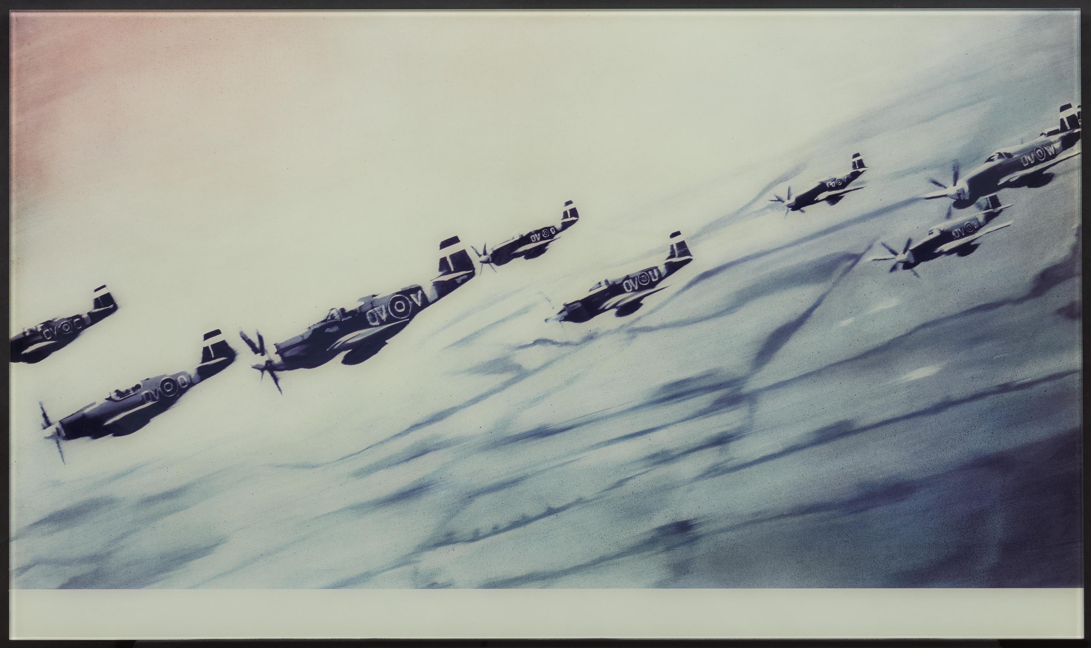 Die Edition zeigt acht P-51 Mustangs, amerikanische Jagdflugzeuge der United States Army Air Forces aus dem Zweiten Weltkrieg. Wie aufgrund der Hoheitszeichen auf den Militärmaschinen zu erkennen ist, wurden diese Flugzeuge auch von der britischen Royal Air Force eingesetzt. Der Kunsthistoriker Uwe M. Schneede erläutert, ein solches von Richter verwendetes Motiv sei "noch längst kein zeitkritisches Bild, wohl aber eines, das subjektiv festhält, was die Zeit bewegte". Denn in der ersten Hälfte der 1960er-Jahre beginnen sowohl die selbstkritische deutsche Auseinandersetzung mit der Geschichte des Nationalsozialismus als auch die schweren Luftangriffe auf Vietnam, die Krieg zum Gegenstand des Erinnerns und der Reflexion werden lassen.