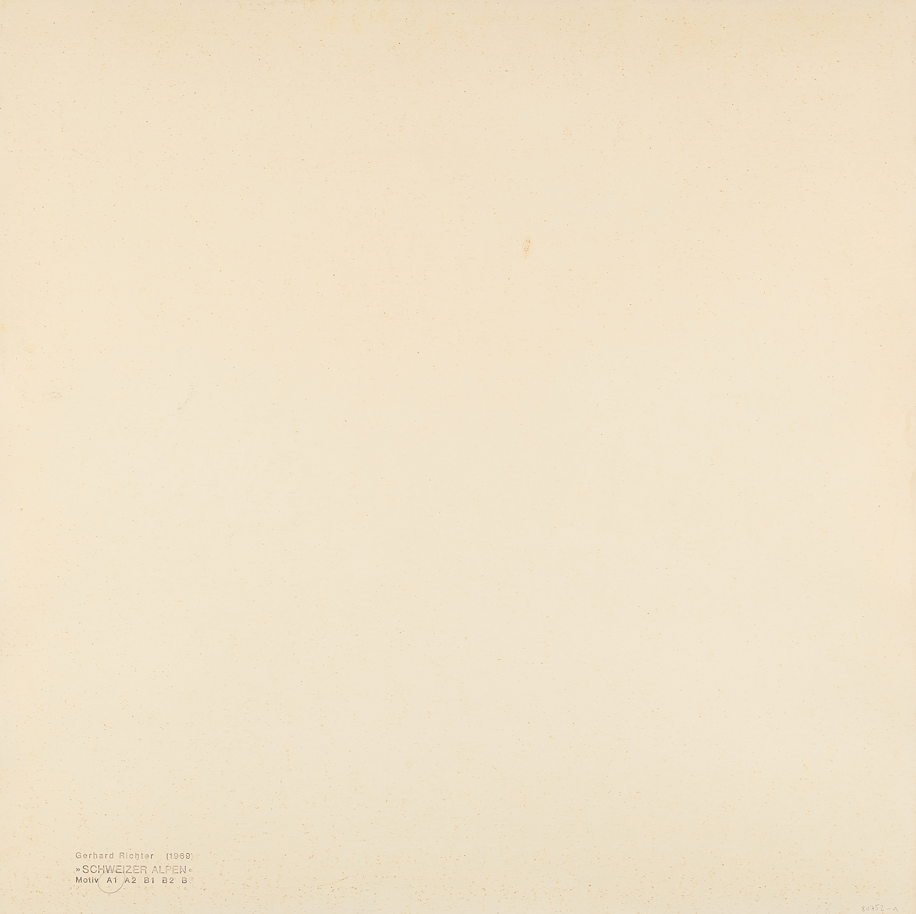 Verso mit Stempel "Gerhard Richter (1969) >>SCHWEIZER ALPEN<< Motiv A1 A2 B1 B2 B3", wobei hier das zutreffende Motiv A1 eingekreist ist. Aus der Auflage von 300 signierten Exemplaren.