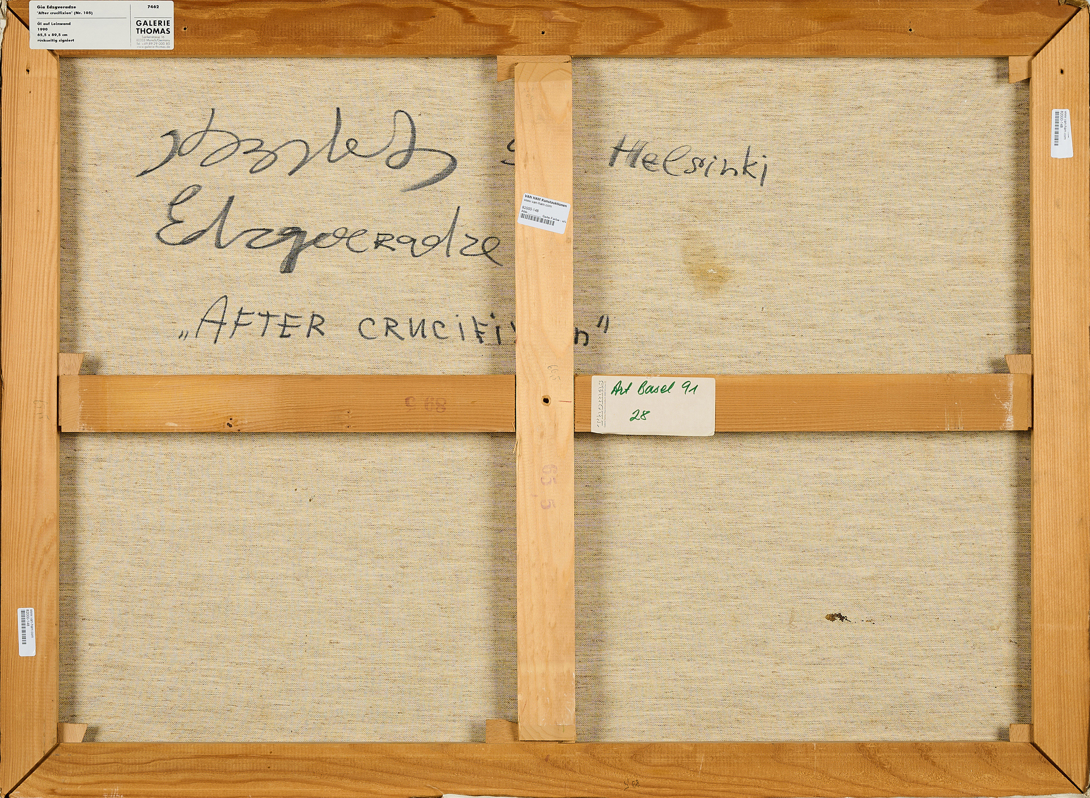 Bezeichnung: Bezeichnet, datiert, signiert und betitelt verso: ... 90 Helsinki Edzgveradze "AFTER CRUCIFIXION".