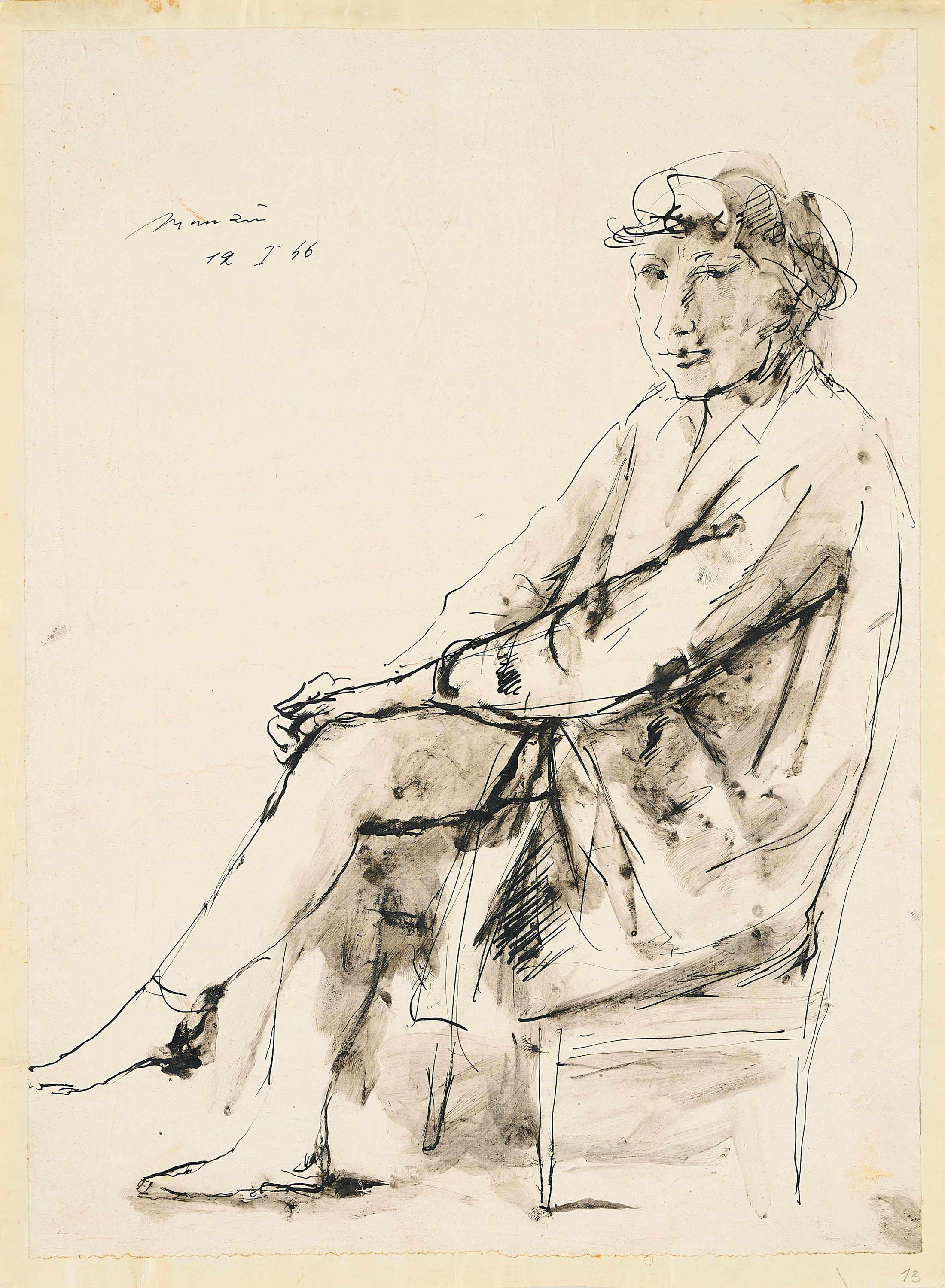 Bezeichnung: Signiert und datiert oben links: Manzù 12 I 46. Trägerpapier verso unten mit Zollstempel und oben Bezeichnung von fremder Hand.