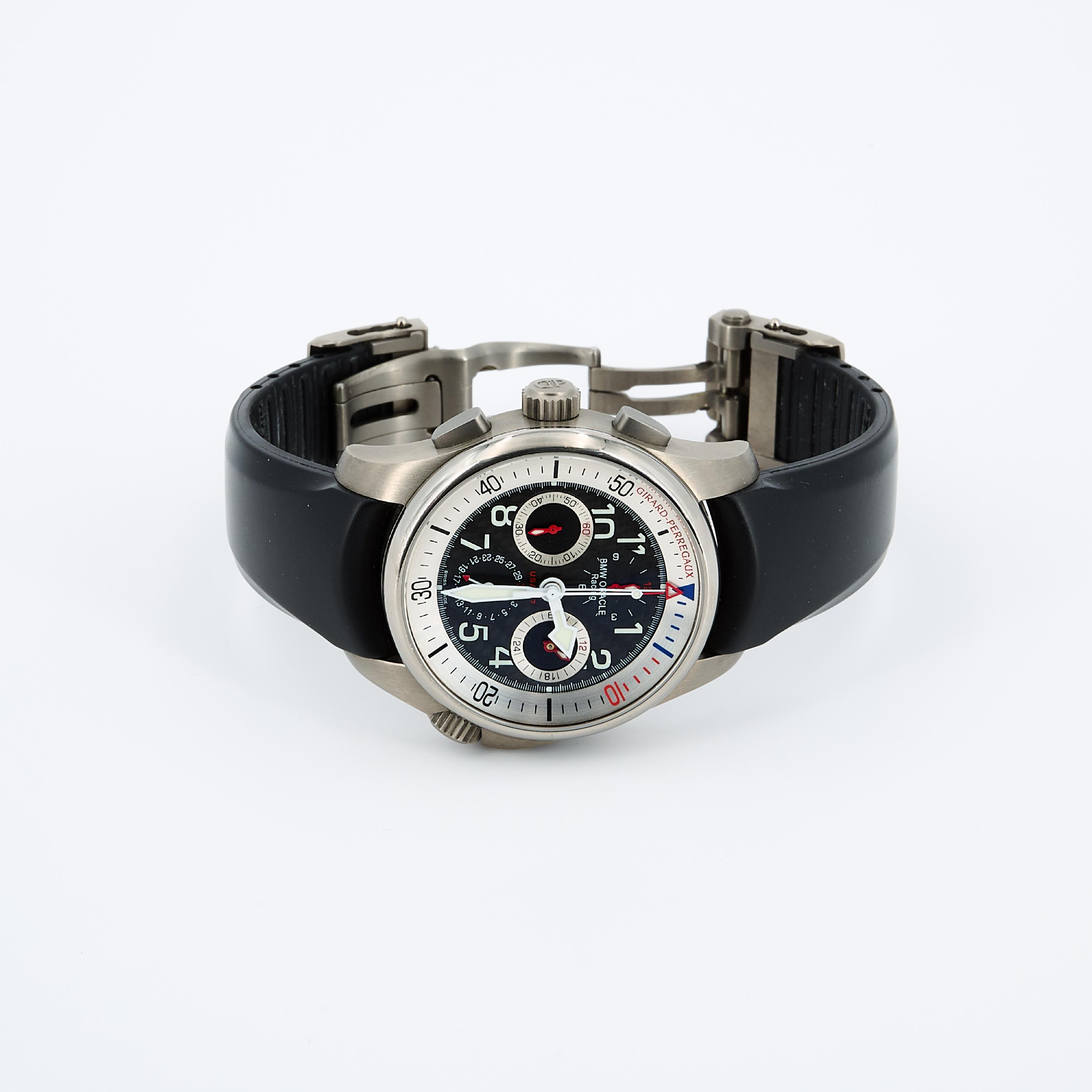 Beschreibung: 3-Zeiger-Chronograph mit 24-Stundenanzeige bei "3" Uhr, Zeigerdatum bei "6" Uhr,