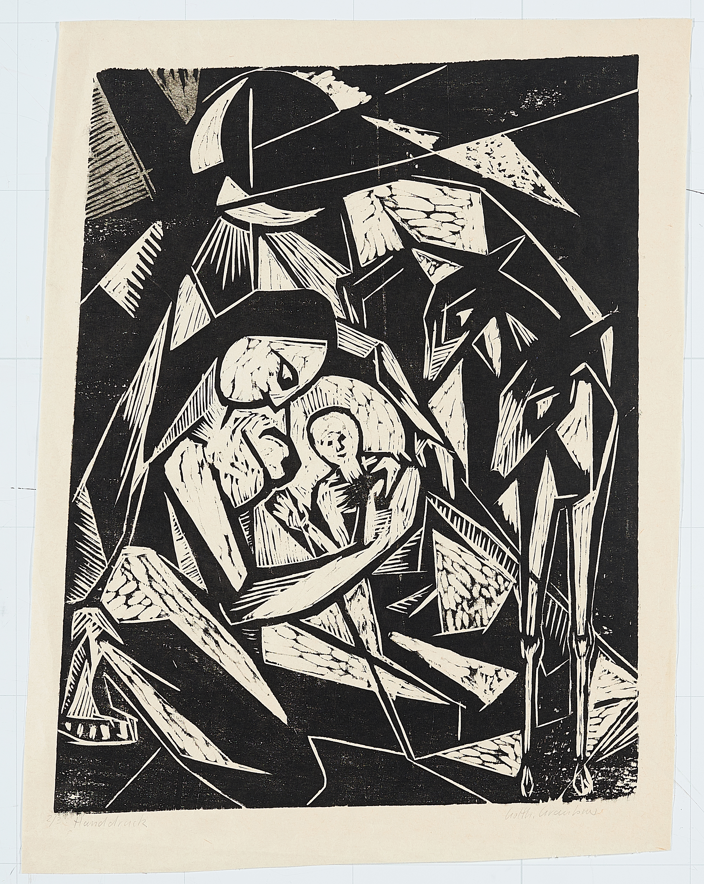 Blatt unregelmäßig beschnitten (werkimmanent?). Eine minimale Falzspur entlang der unteren Kante. Verso Reste alter Montierung. Ansonsten ist das Werk in einem sehr guten Zustand.