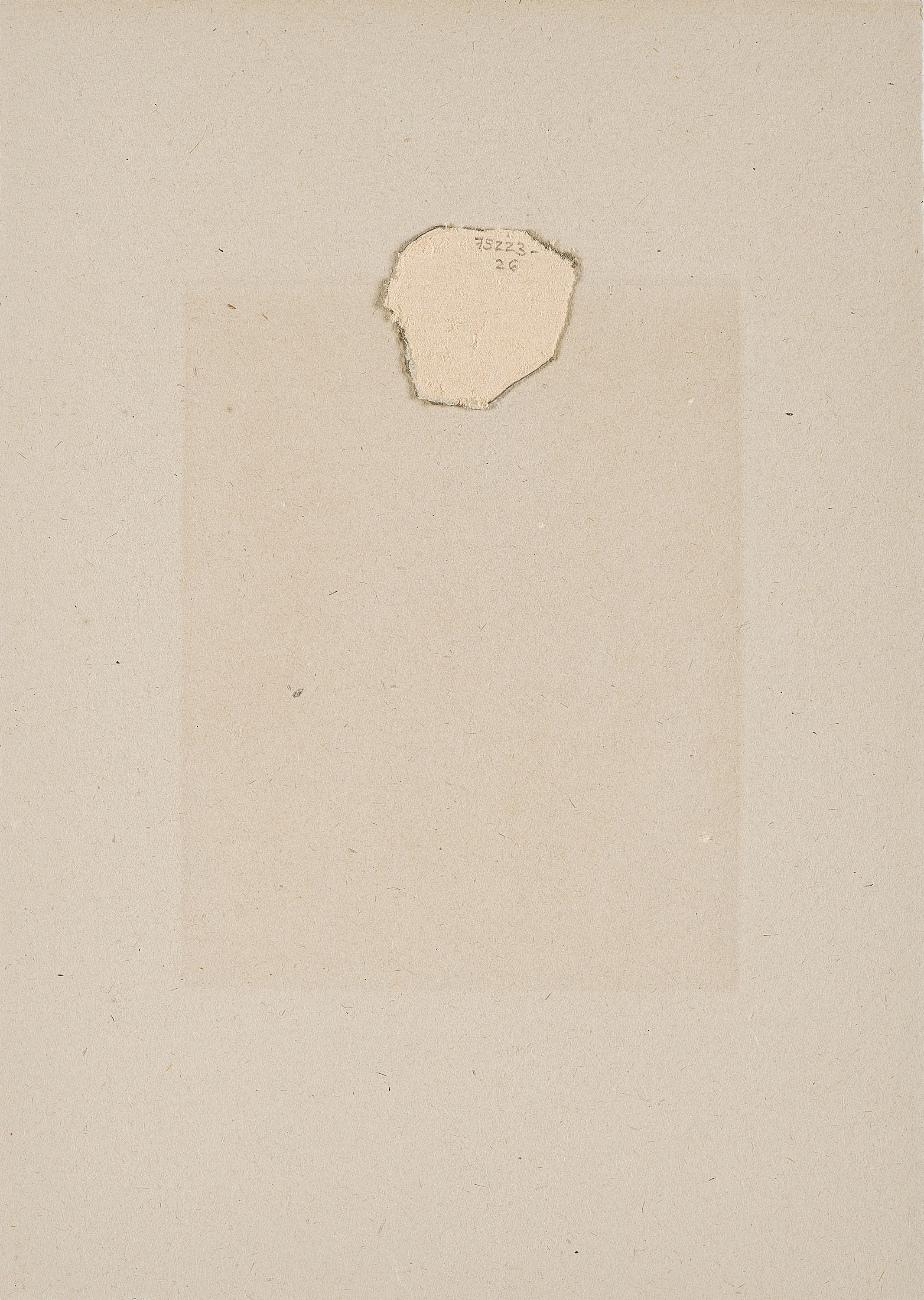 Minimale strichförmige Farbaufriebe am linken Rand. 3 Fleckchen (eventuell Stockfleckchen?) rechts oben in und neben der Darstellung. Verso Rest alter Montierung. Ansonsten sehr guter Zustand.