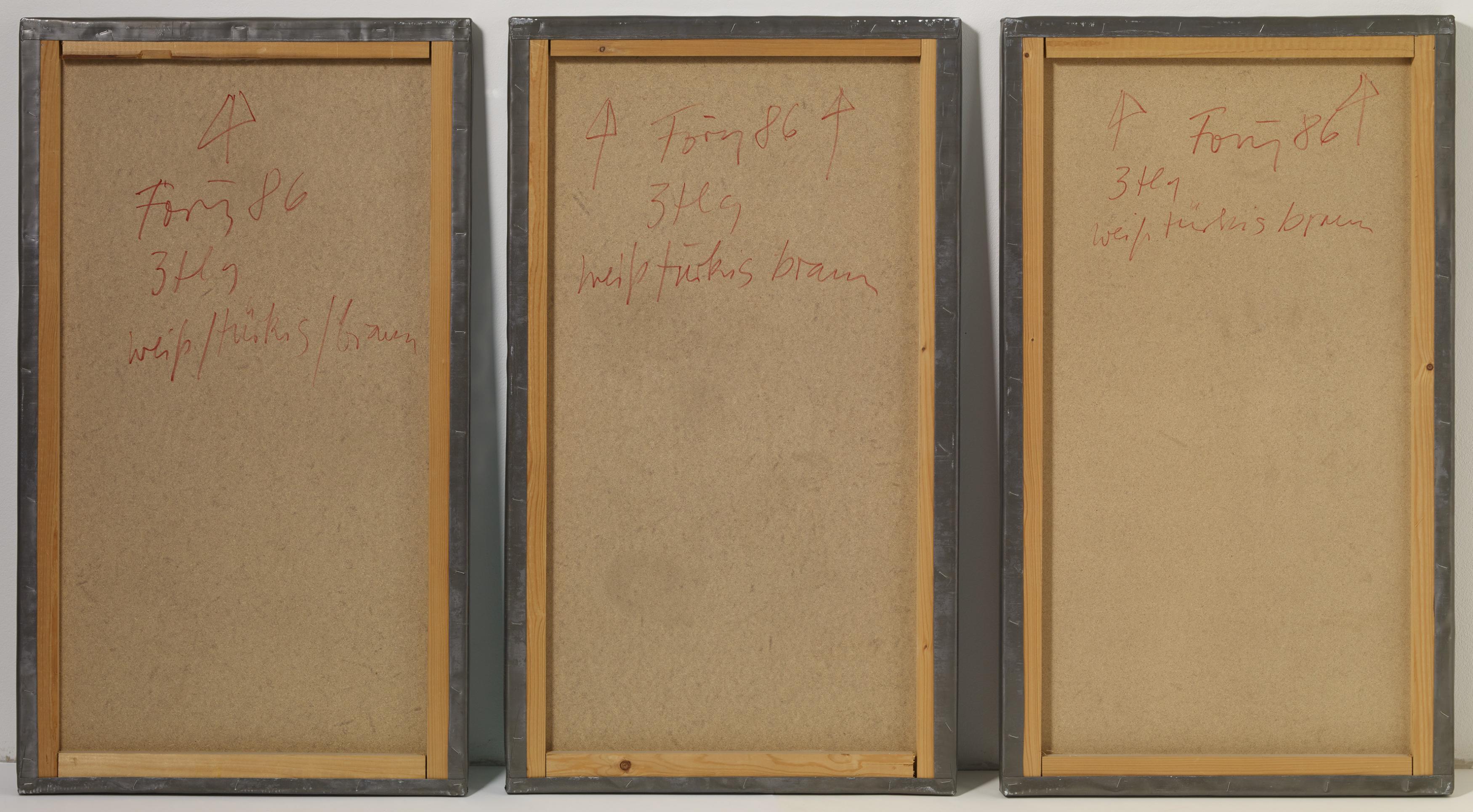 Bezeichnung: Jeweils: Signiert und datiert verso: Förg 86. Hier zudem mit Beschriftung der Reihenfolge: weiß türkis braun.