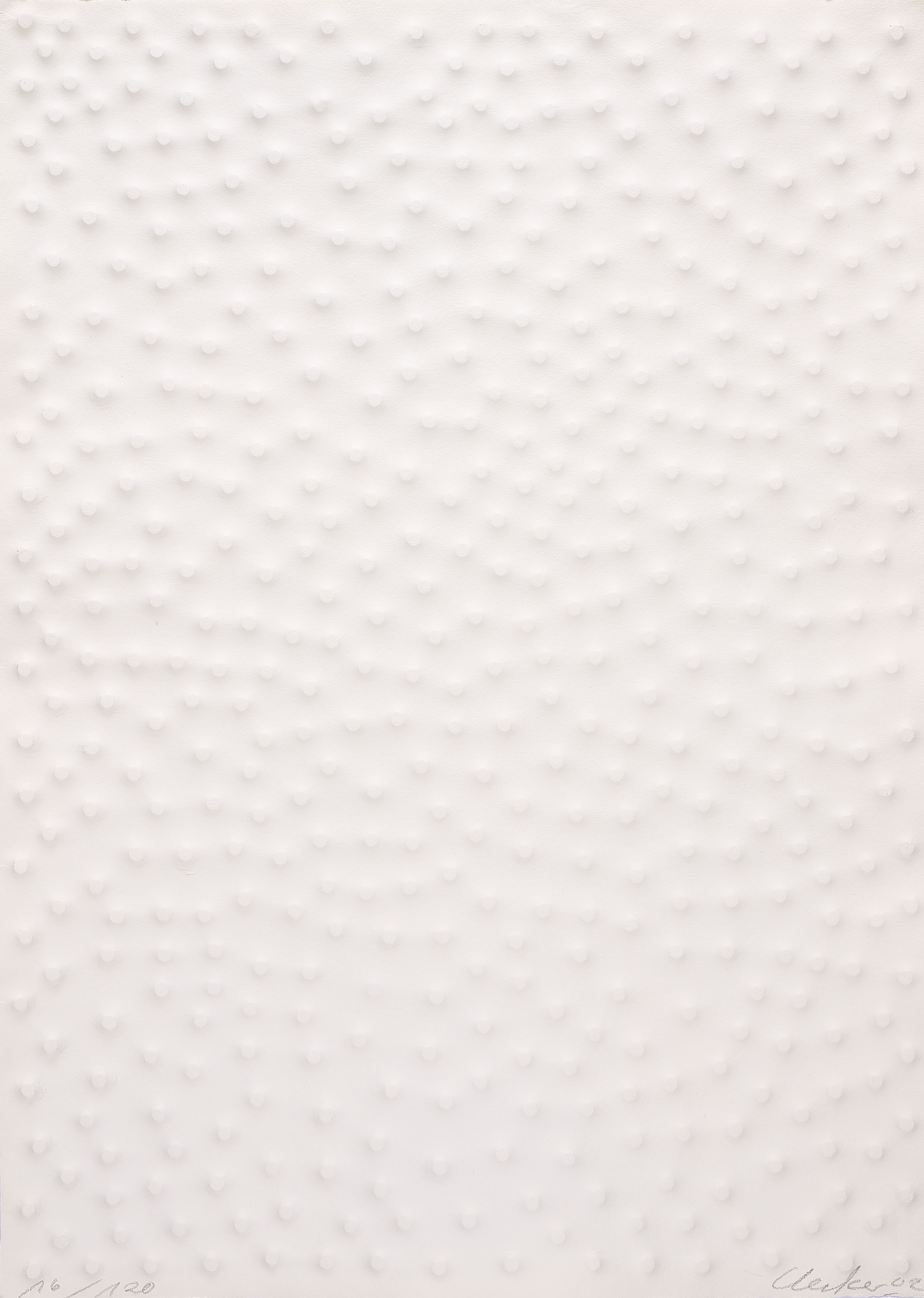 Technik: Prägedruck auf handgeschöpftem Bütten.