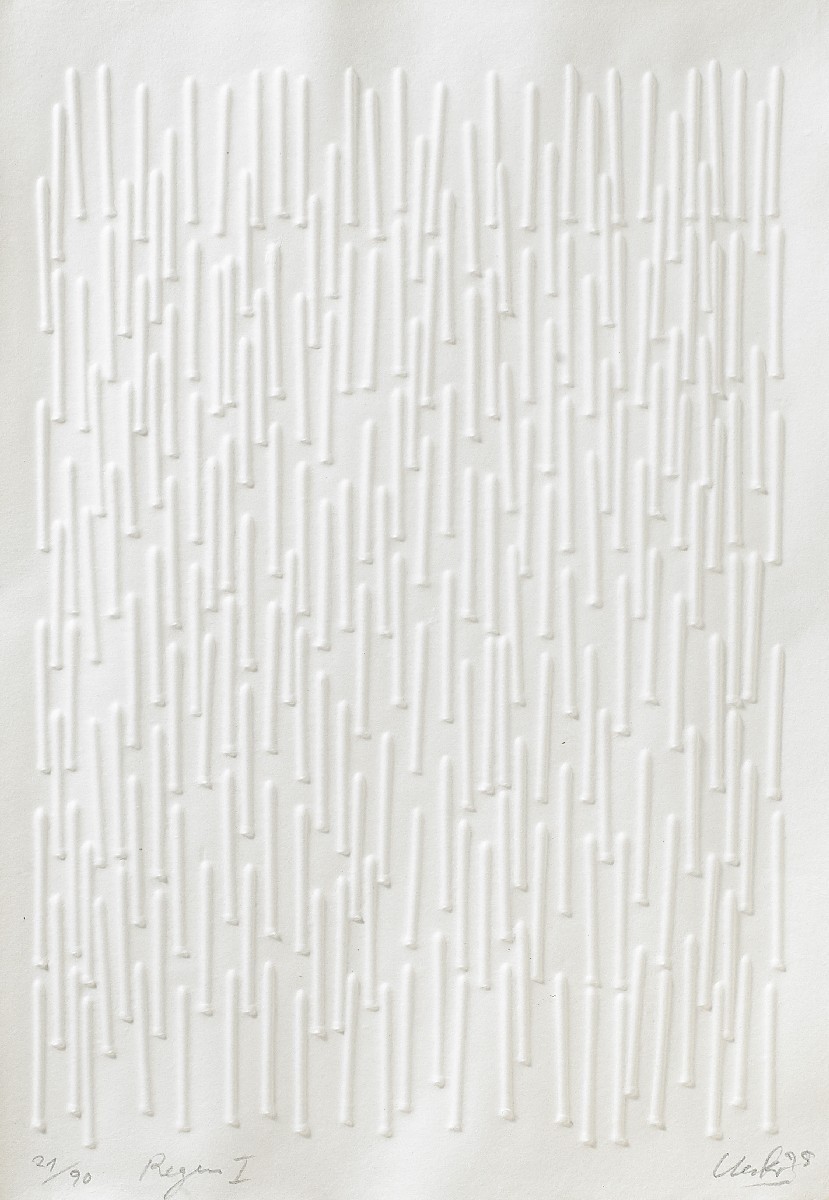 Uecker, Günther 1930 Wentdorf Regen I. 1995. Prägedruck auf handgeschöpftem Bütten. 62 x 44cm (70 x 49cm). Ex. 21/90. Signiert, datiert und nummeriert. ...