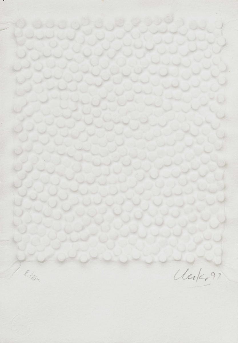 Technik: Prägedruck auf handgeschöpftem Zeittafel-Bütten.