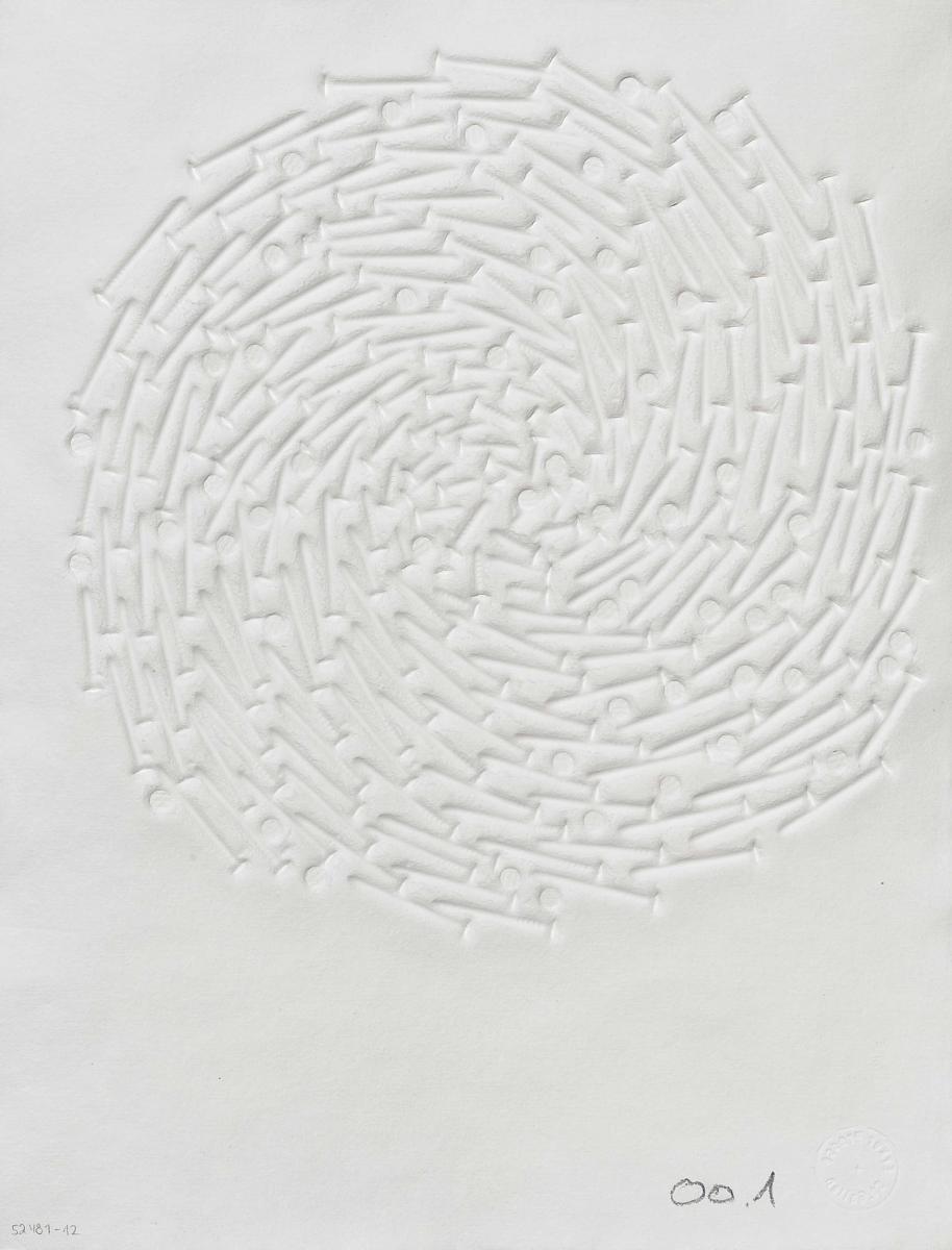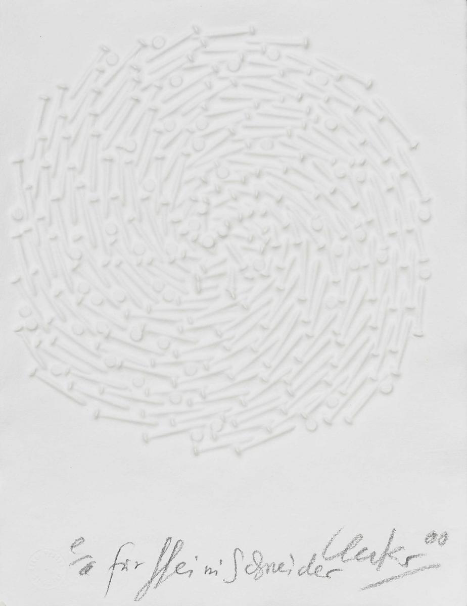 Technik: Prägedruck auf handgeschöpftem Zeittafel-Bütten.